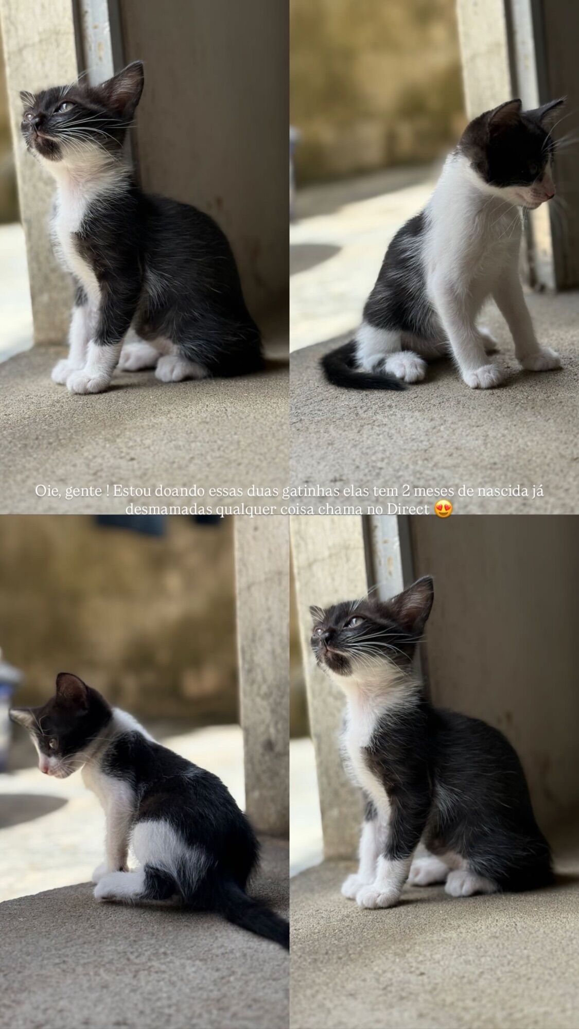 Tenho três gatos para doação um todo preto e o outro branco com preto todas são fêmeas o motivo da minha doação pois eu não estou conseguindo comportar elas três dentro de casa estou sem tempo pra cuidar delas e pra não jogar fora ou não ter tempo de cuidar eu queria doar