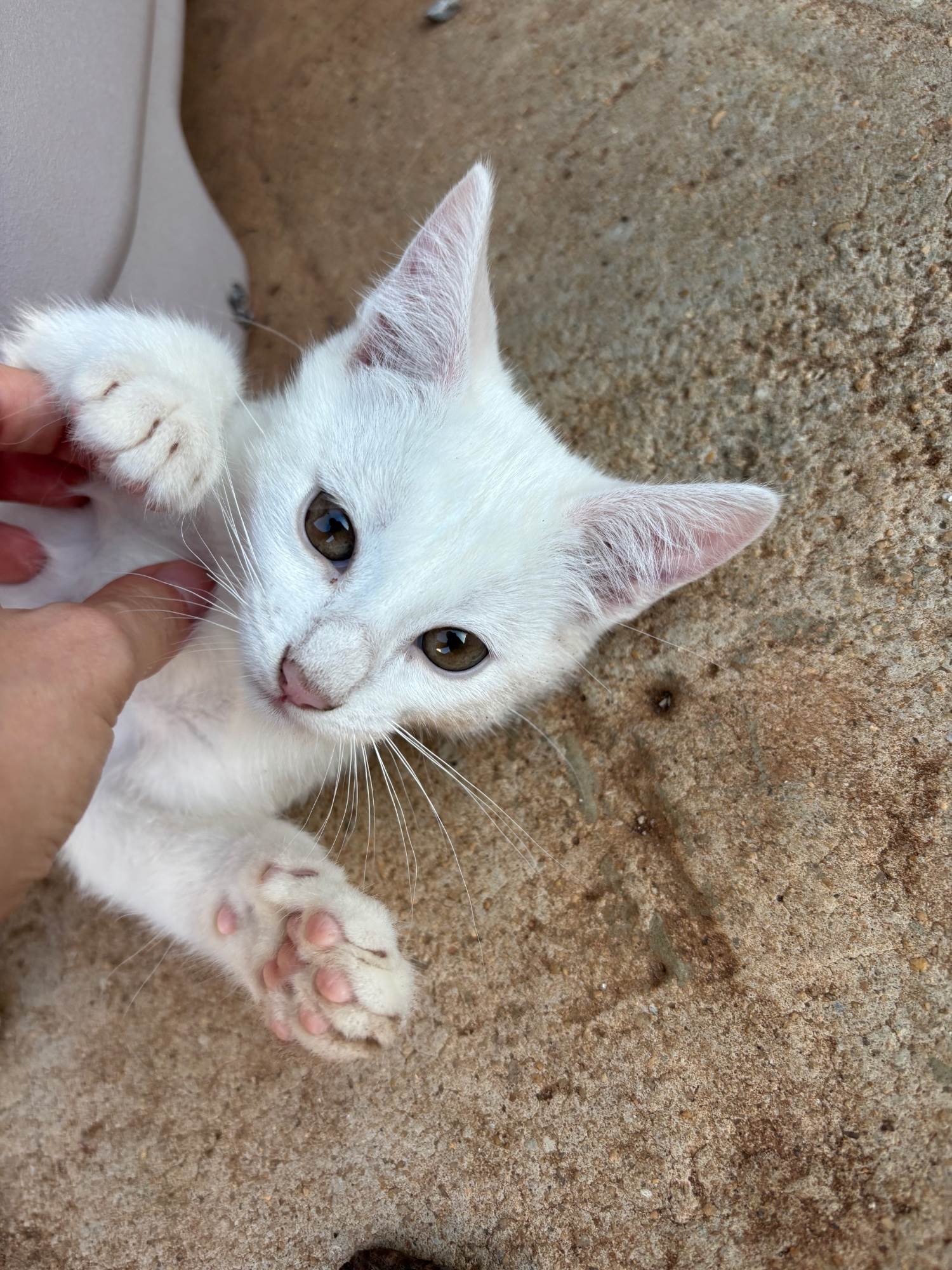 Conheça a florzinha! Uma gatinha muito doce e curiosa, toda branquinha, vai ser sua melhor amiga! Já usa caixinha de areia e come ração, está procurando uma família!