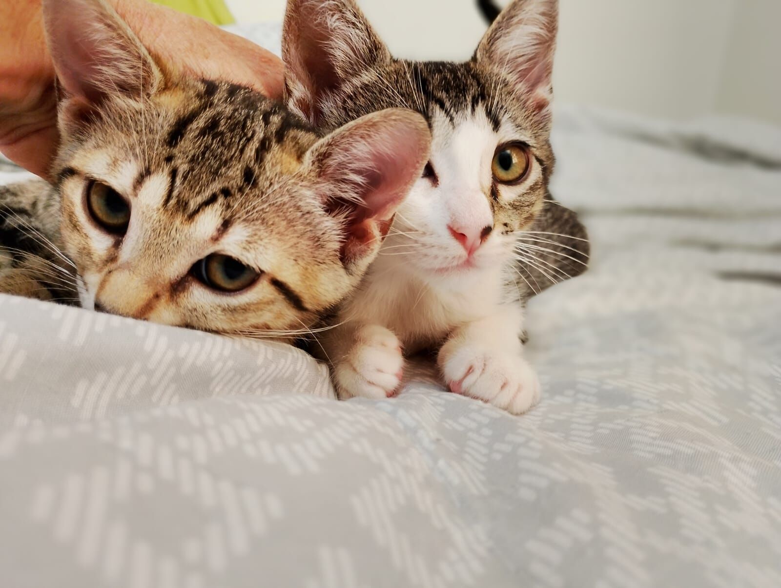 Resgatei essas pequenas na UnB. Acabaram de completar dois meses e estão super saudáveis. As duas ronronam, dormem na cama comigo e são carinhosas.