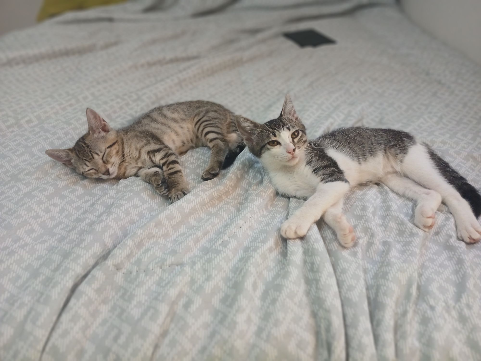 Eu me responsabilizo pelas vacinas (que já começaremos agora), pela castração, quando estiverem um pouco maiores (daqui a cerca de 3 meses), e ainda entrego um pequeno enxoval, com pratinhos, caixa de areia, areia e racão. Tudo para que elas comecem a vida no novo lar com tudo que elas precisem.