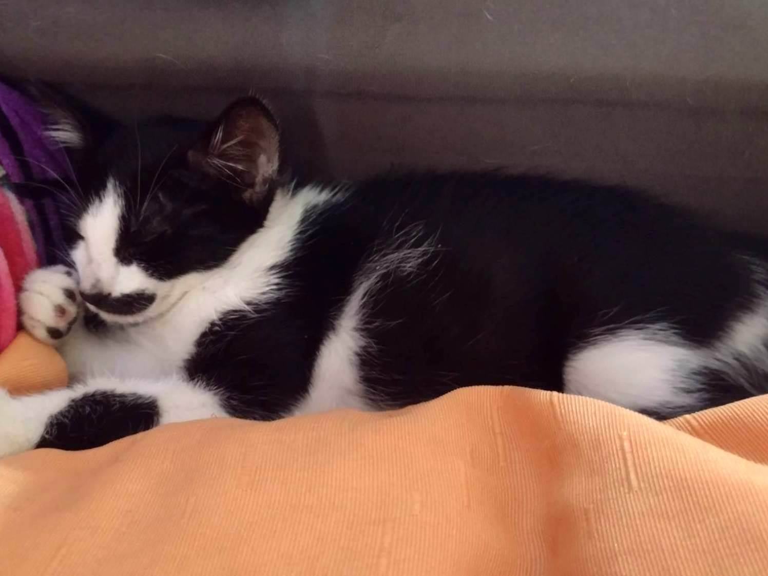 Uma gatinha muito carinhosoa e brincalhona. Já come ração e usa a caixinha. Ama brincar, comer e dormir.