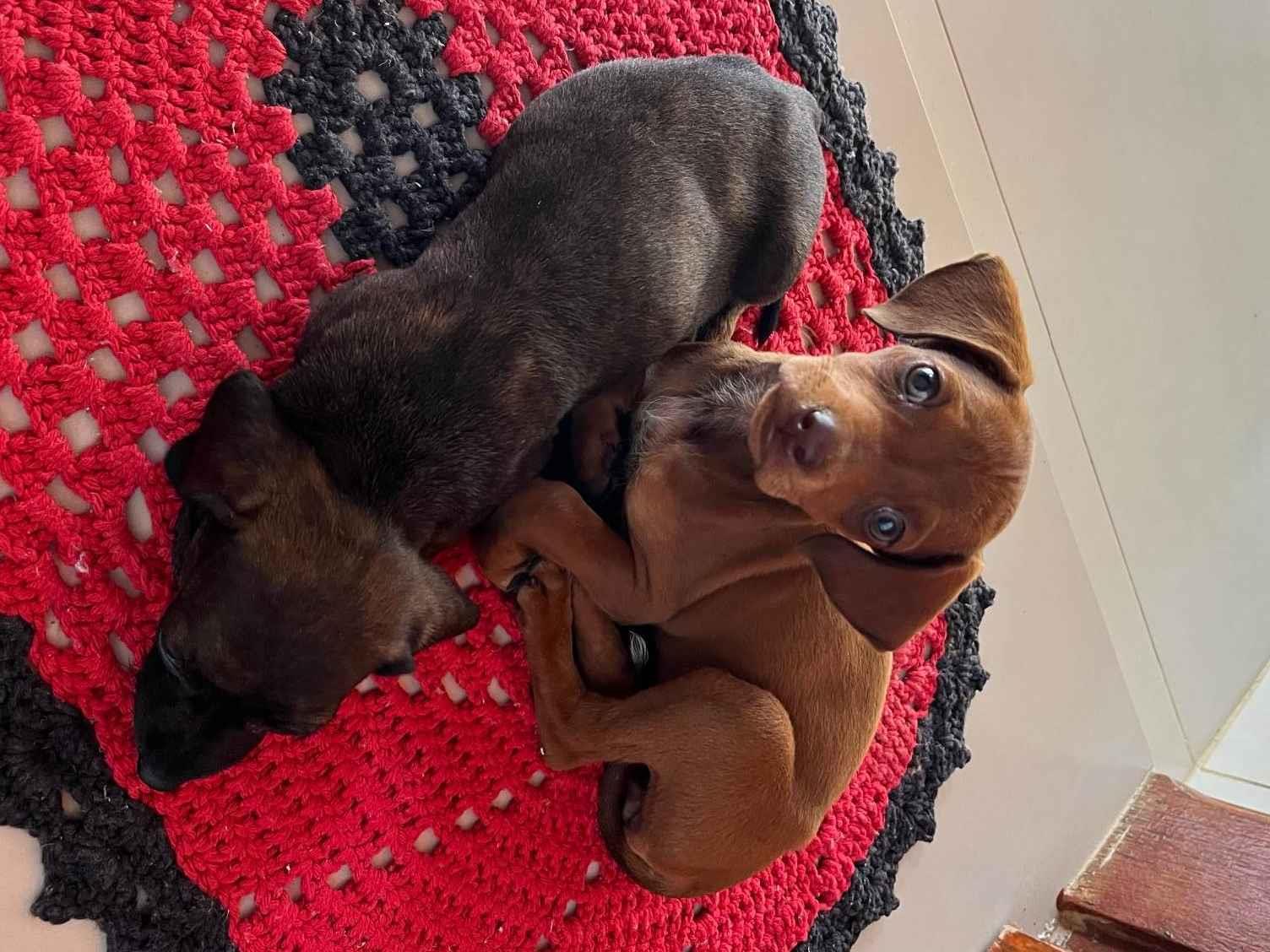 Encontramos duas cachorrinhas abandonadas no lixo e agora procuramos quem possa dar um lar a elas! Estão com as vacinas em dia, vermifugadas, tomaram Credeli contra os carrapatos e pulgas.