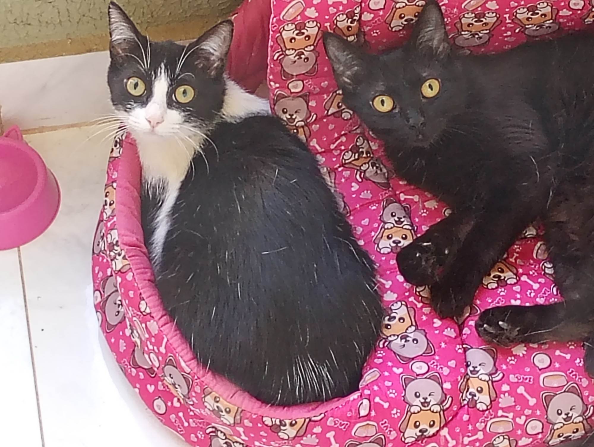 Duas gatas irmãs, são tímidas porém muito dóceis, gostam de brincar pela casa e de fazer companhia.