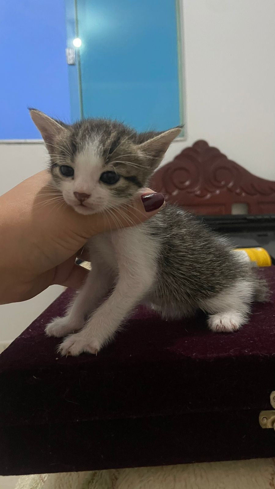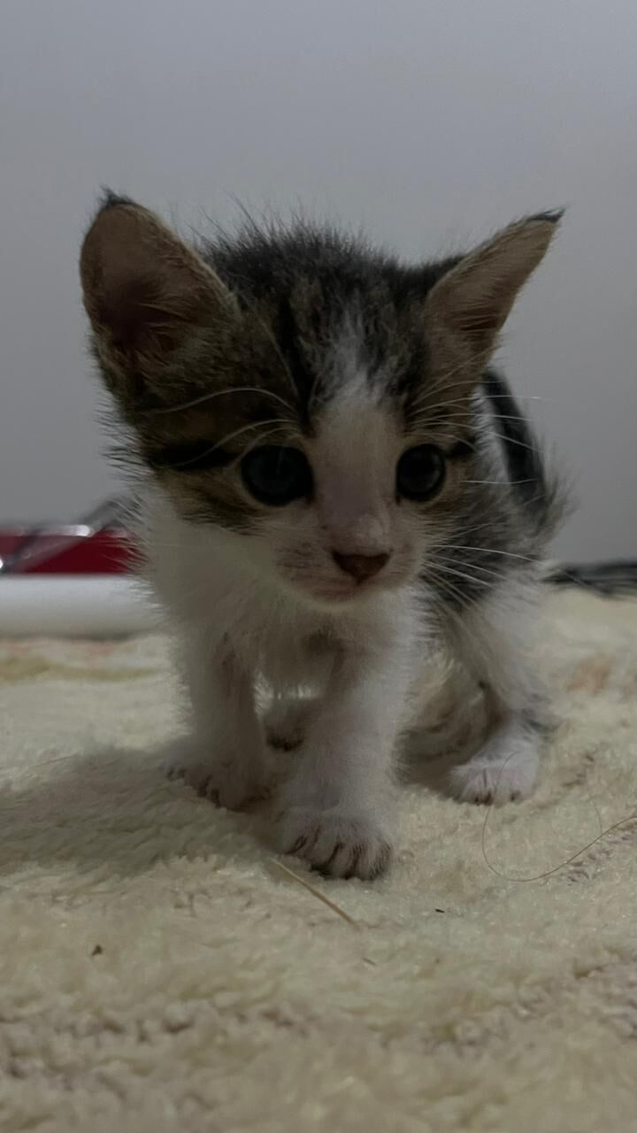 Ele nasceu recentemente, já consegue se alimentar por ração e o motivo da doação é que a tutora é asmática