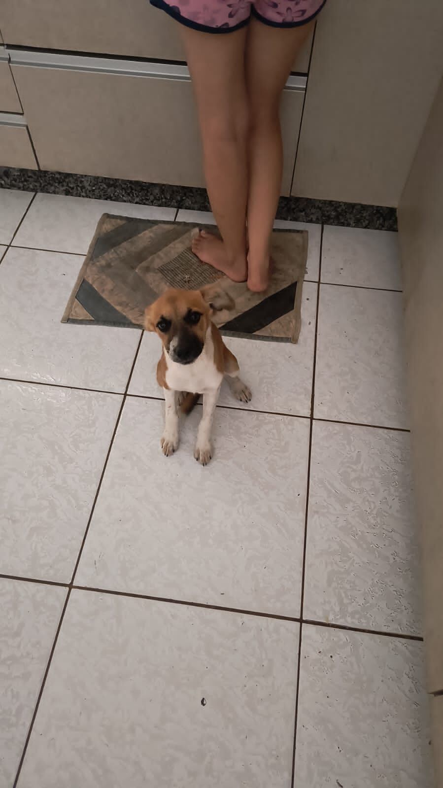 Resgatei ela em uma construção abandonada, tem em torno de 4 meses, é extremamente dócil, muito alegre e carinhosa, gosta de brincar e é cheia de energia, será uma ótima companhia para crianças e idosos.