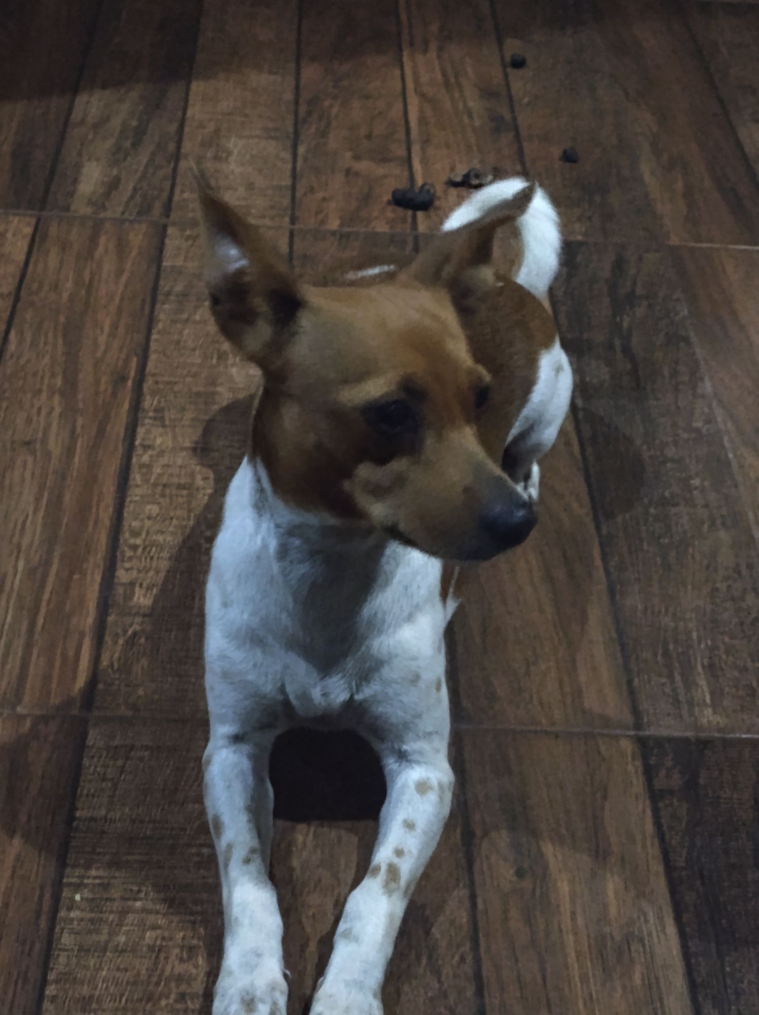 A Mariquinha é uma fêmea lindinha, muito dócil e brincalhona. Ela ama um carinho e tem aquele "olhar de pidona" que é impossível resistir! KKKKKKK, a raça dela é misturada com vira lata e Pincher.