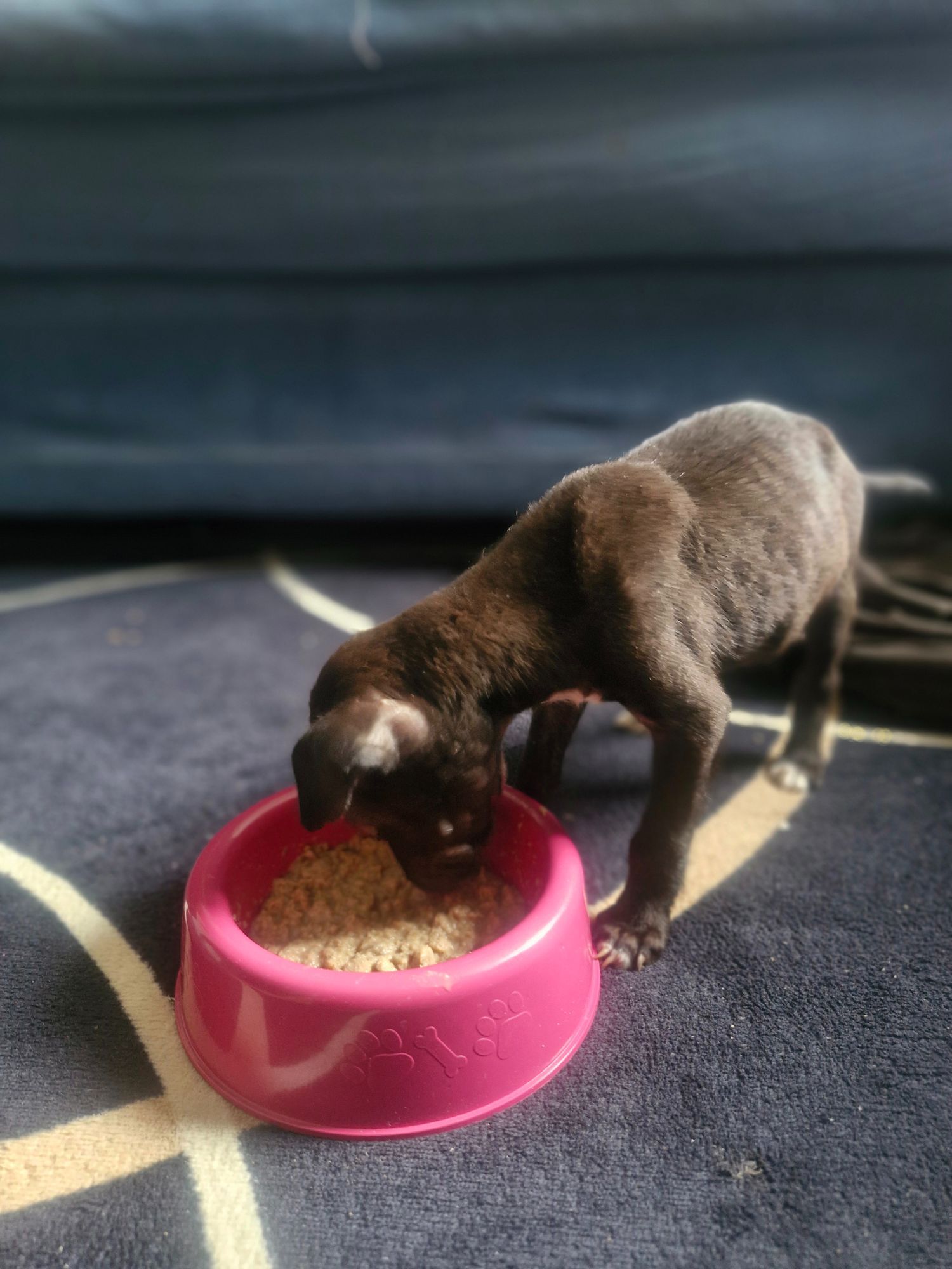Eu encontrei ele ontem na chuva e peguei como lar temporário, pois eu moro em apartamento nao e permitido pet, em disso trabalho com viagem.. ainda nao foi vacinado pois acho que nao tem idade p issk