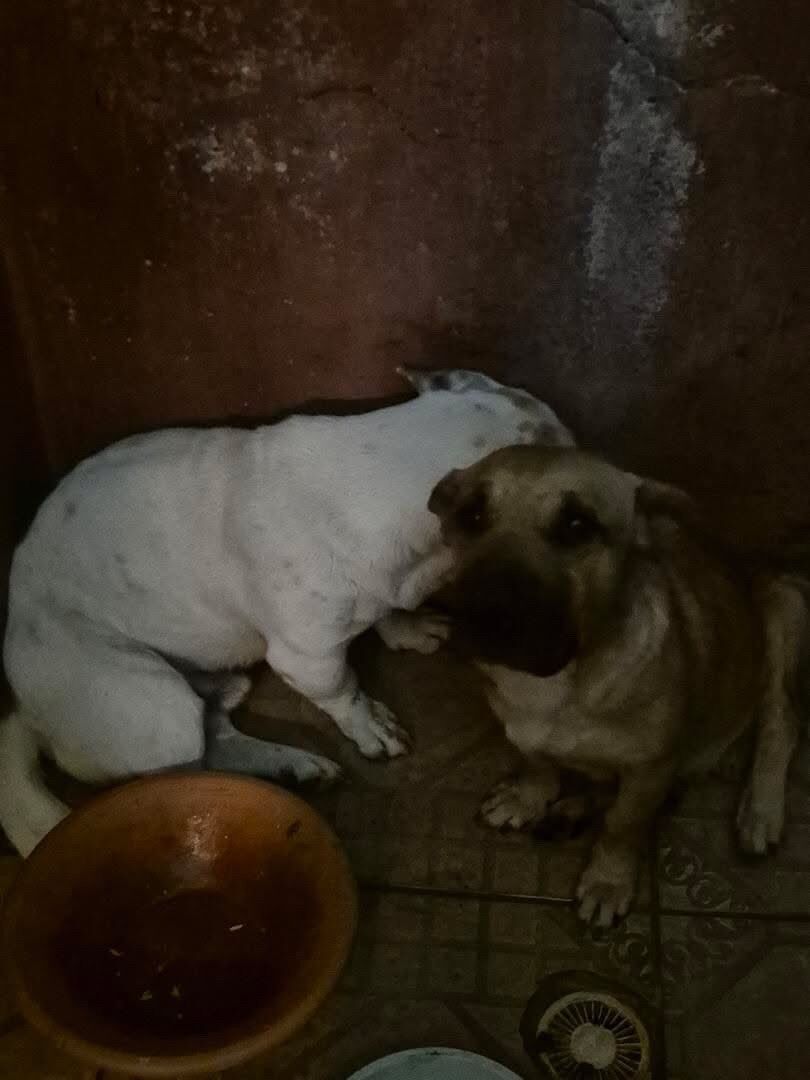 Os dois eram do ex proprietário da casa. O antigo dono se mudou e os abandonou na casa. Não temos condições de criar os dois, e também a casa está em reforma pois ainda não moramos lá, e eles ficam abandonados e contamos com ajuda da vizinha para colocar ração para eles, pois não conseguimos ir todos os dias no local para alimenta-los. A fêmea é mais arrisca que o macho. Não sabemos se eles são vermifugados, mas acredito que não são castrados. Por favor, ficamos preocupados com eles sozinhos no local, pois já tentaram arrombar o portão e deixaram o portão aberto, correndo o risco dos cachorros fugirem para a rua. Pois não mora ninguém na casa no momento!