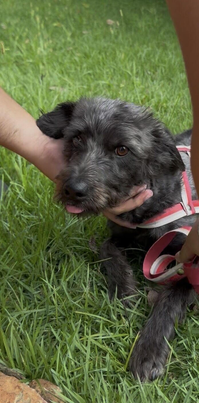A Filó é uma cachorrinha jovem, de porte médio, dócil e carinhosa. Foi resgatada após atropelamento, com fratura na pélvis, e encontra-se recuperada, andando e correndo normalmente, com leve manca residual.