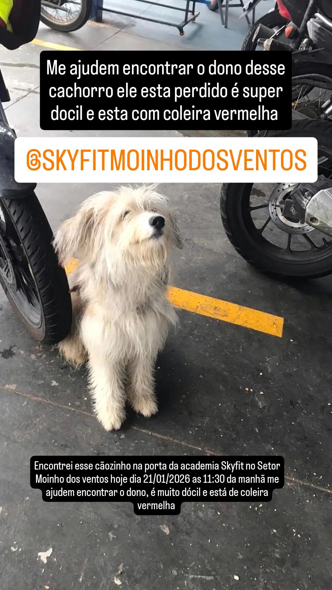 Eu o encontrei perdido na porta da Skyfit do Moinho dos Ventos nao sei nome do animal