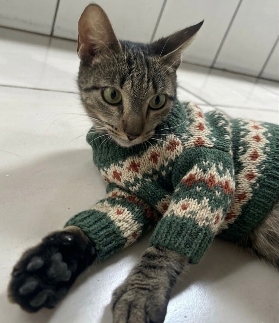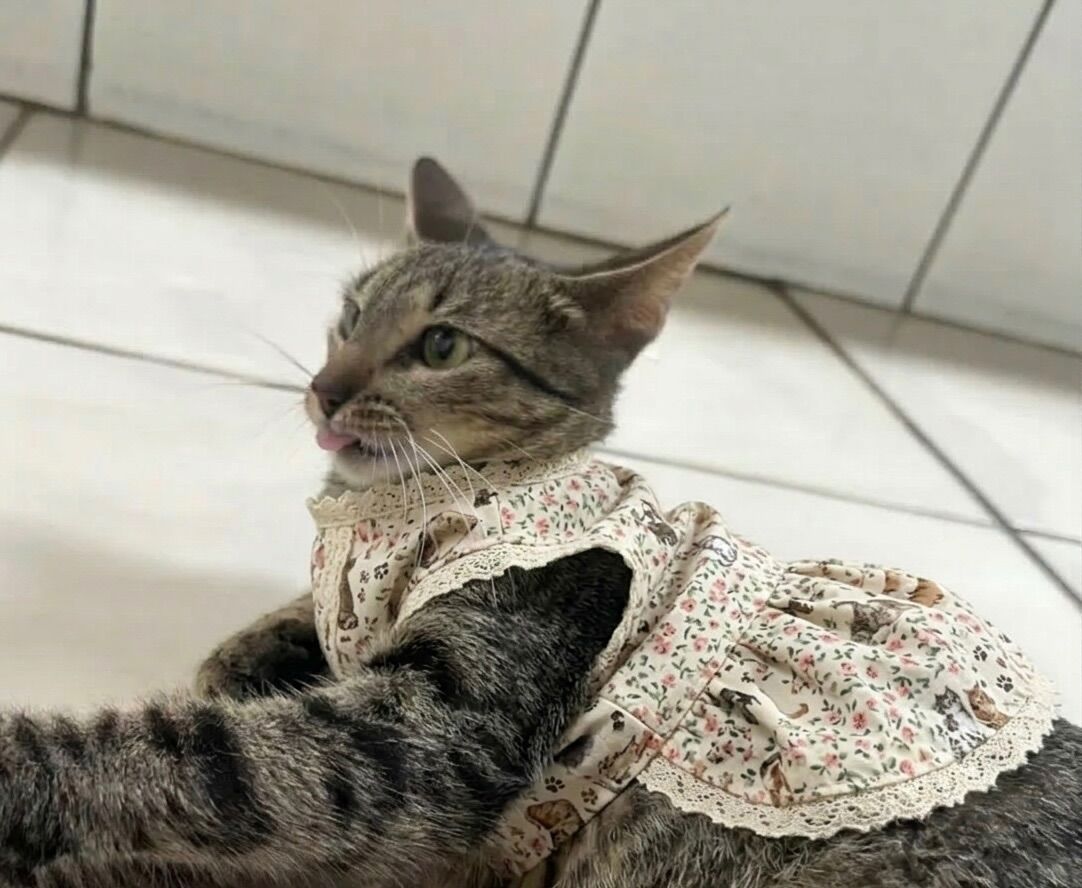 Oii, gente!!!Preciso muito de um lar feliz! Dei a luz a três gatinhos recentemente na casa da tia Sarah, ela me abrigou enquanto pôde, amamentei meus filhotinhos e agora conseguimos doá-los. Mas eu, talvez por já ser adulta, não consegui ainda encontrar um(a) dono(a). Sou meiga, charmosa e esperta, procuro um lar de carinho (e prometo caçar os insetos e ratos que aparecerem). Por: Gatinha rajada