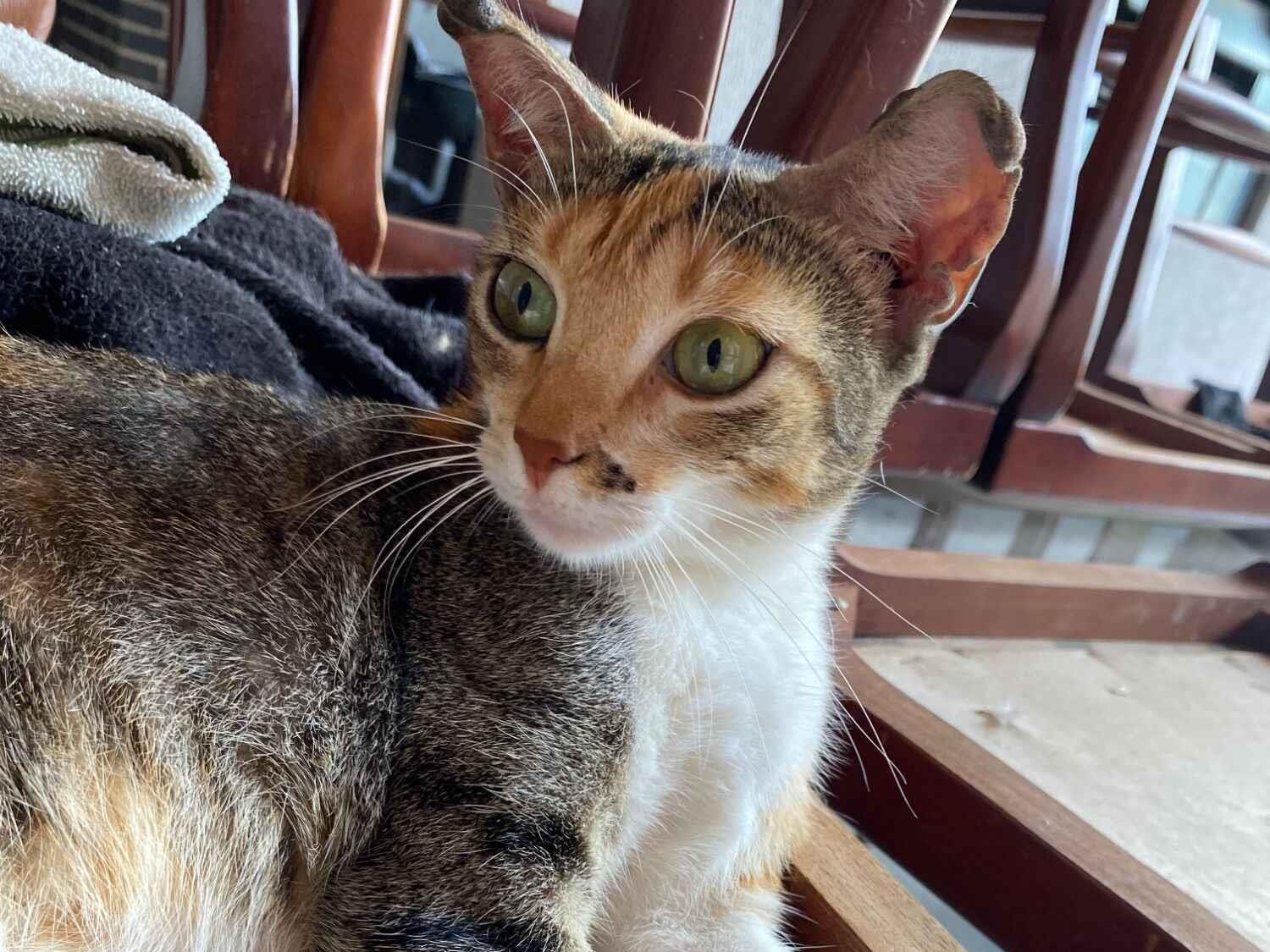 Pegamos ela da rua, estava prenha, disponibilizamos nosso lar como temporário e conseguimos doar os filhotes. Agora ela está para doação, está castrada, é tricolor, dócil e meiga.
