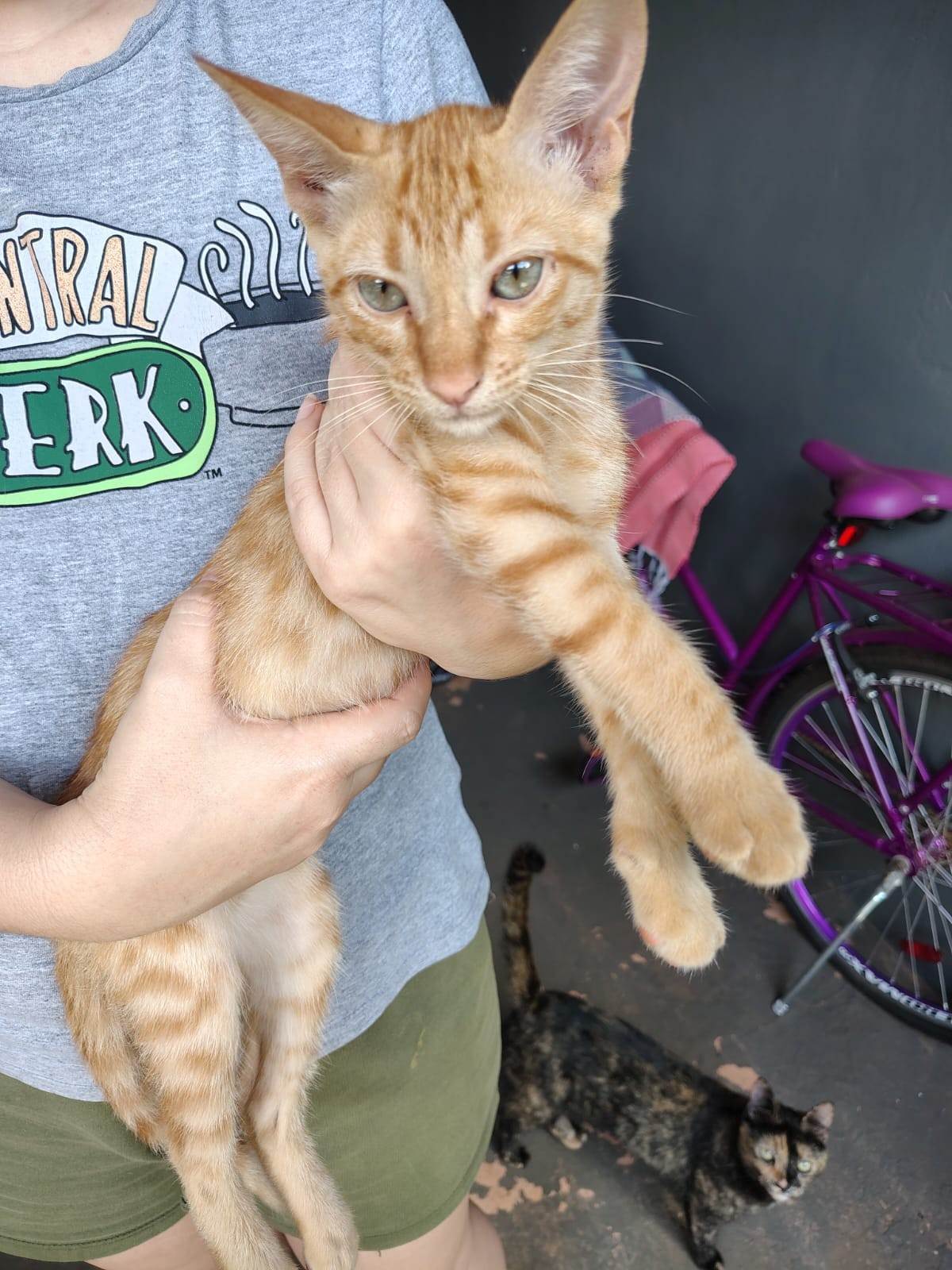 Laranjinha procurando um lar. Bastante dengoso, busca colo sempre. Muito brincalhão. Já usa caixa de areia. Apareceu perdido em meu portão.