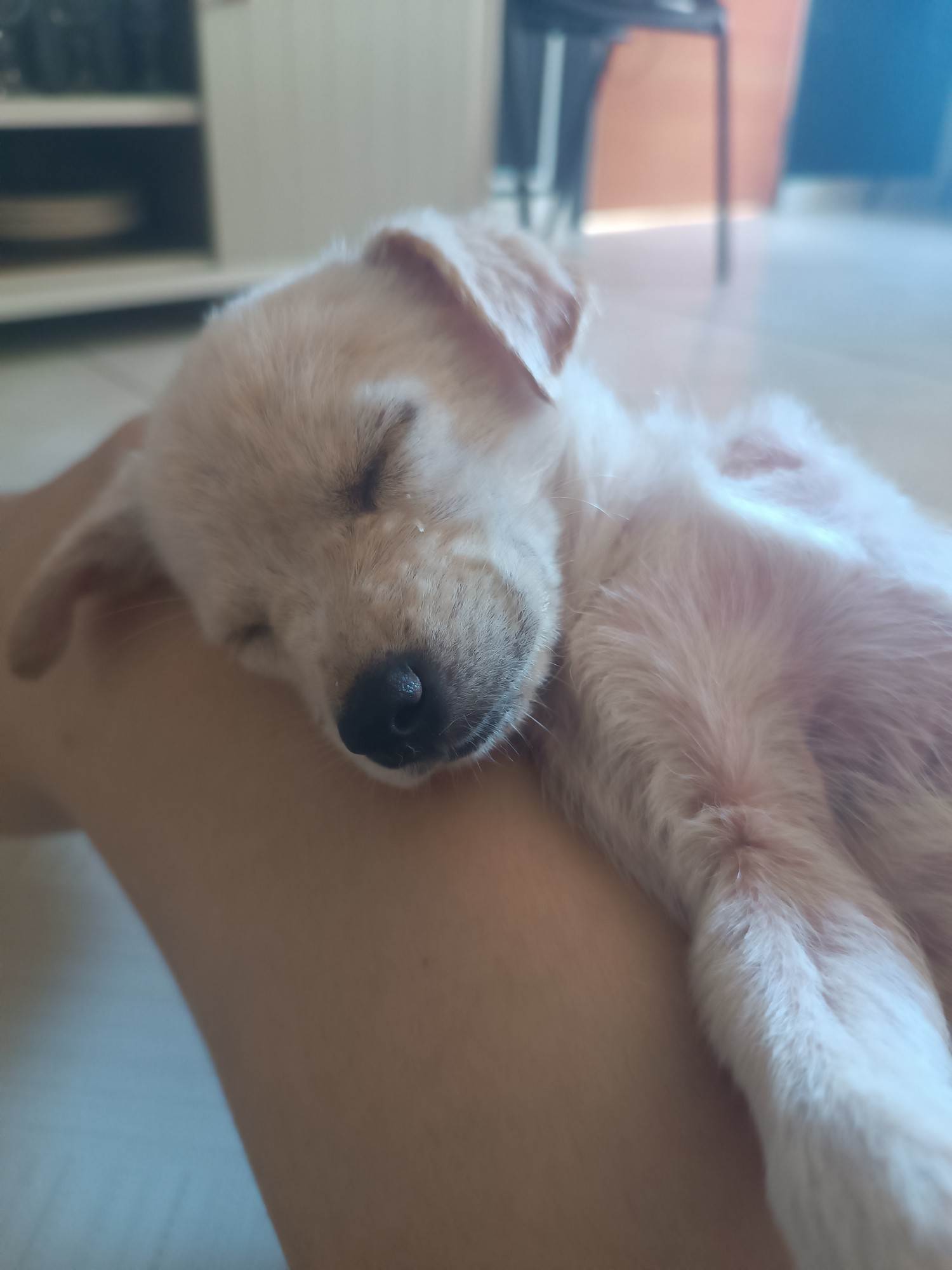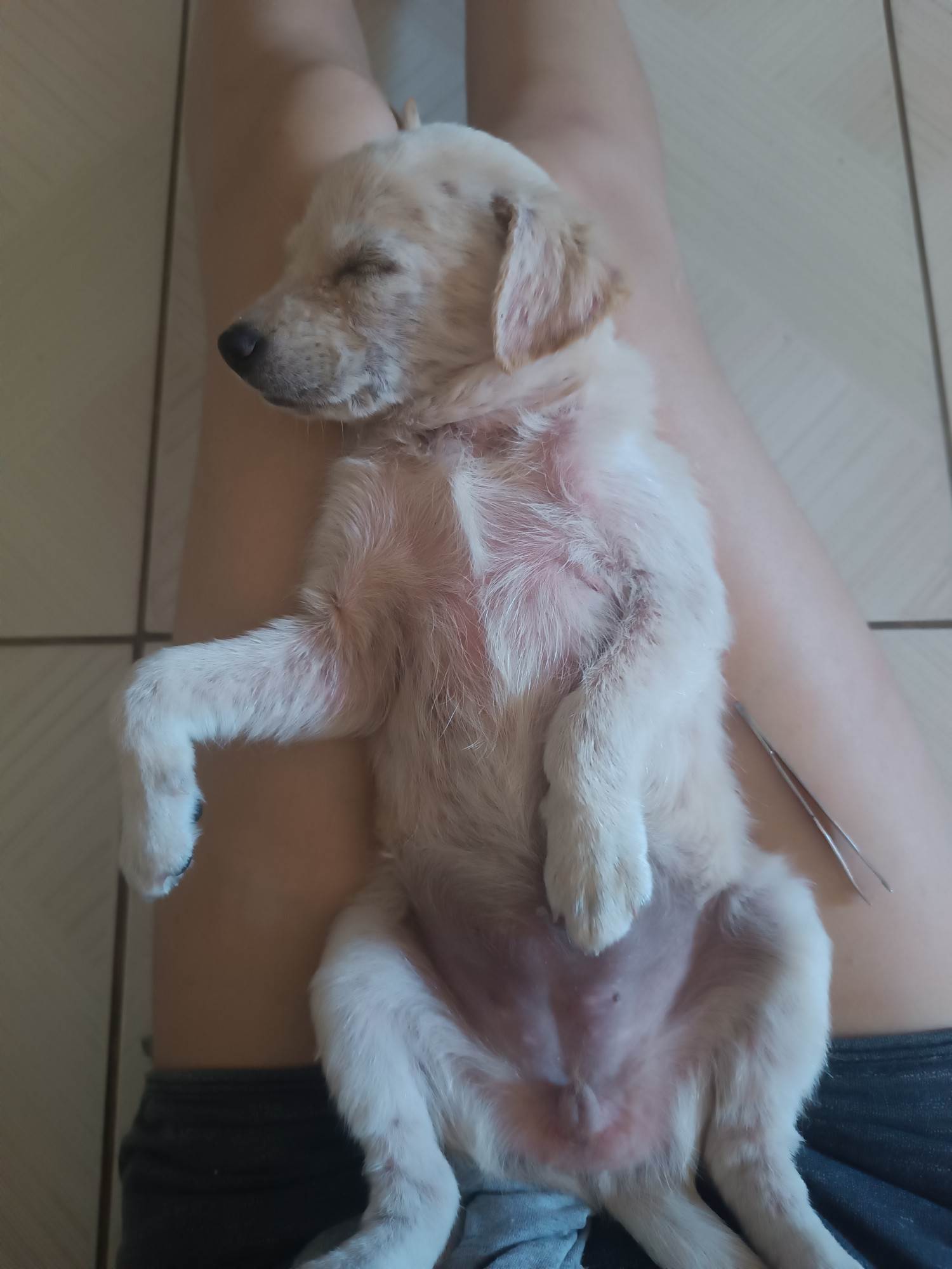 Filhotinha de 2 a 6 meses, super calma e dengosa, devido ter sido encontrada em condições precárias e ter sofrido abuso, possui um pequeno machucado na perna, mas que não a impede de brincar, socializar e se divertir. Super dócil e com olhinhos lindos de jabuticaba, que contrastam com a sua pelagem branca. Vermifugada e alimentada regularmente, pequeno porte mas grande vontade de encontrar uma família que a ame e trate com o maior carinho do mundo.