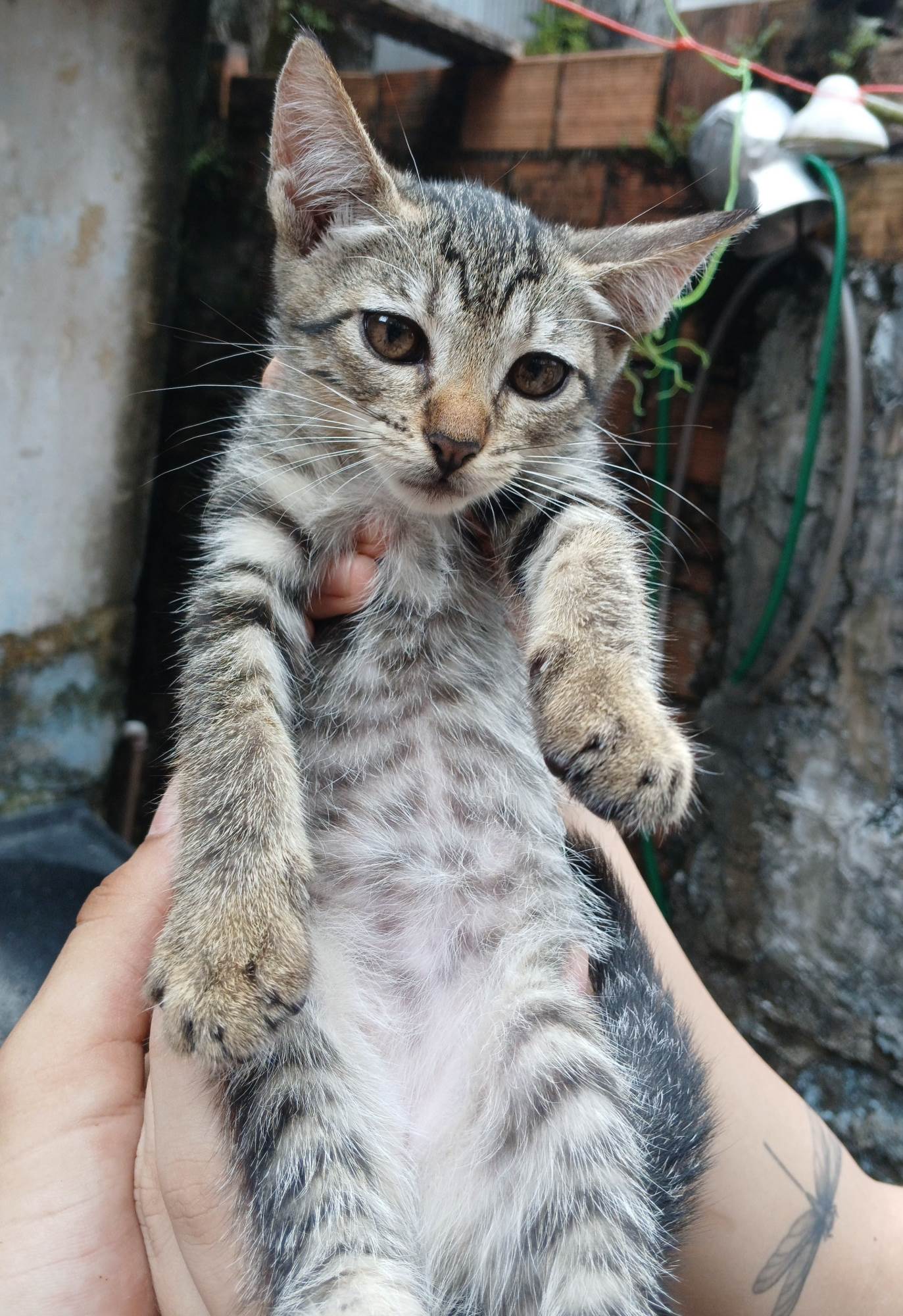 Ela é a única da ninhada que ainda não foi adotada. Os irmãos já seguiram para seus lares, e agora só falta a vez dela. É uma gatinha tranquila, educada e sociável com outros gatos.