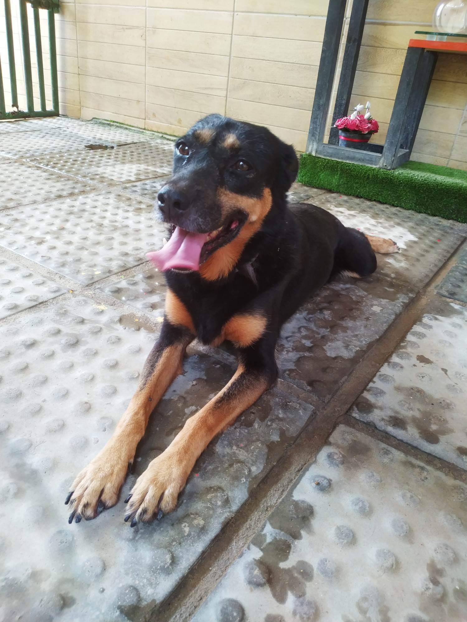 Preta foi abandonada por alguém que se dizia ser a sua família. Portanto, o seu destino foi parar num lar temporário e até hoje ela vive nesse lugar ??