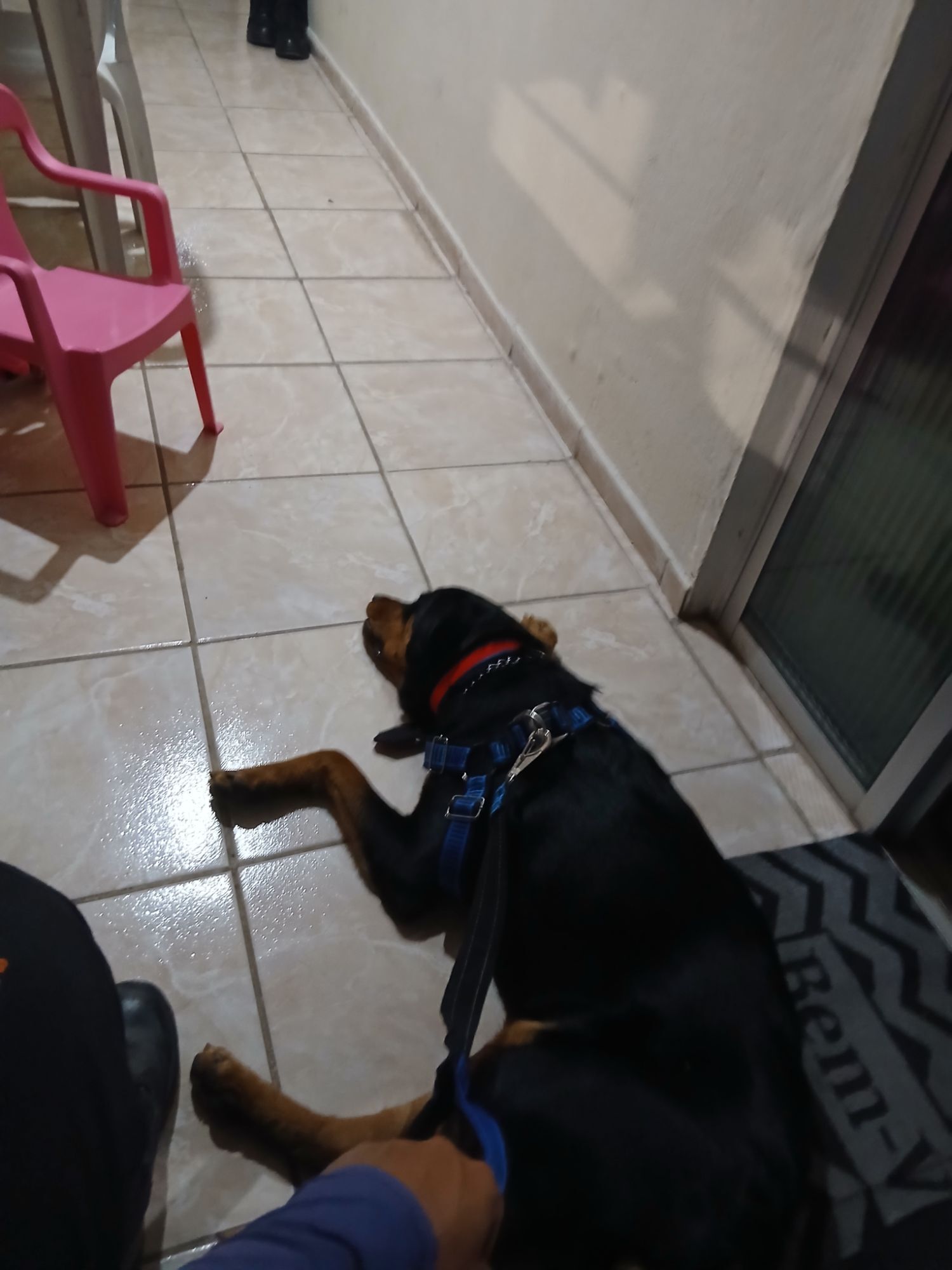 Encontrei Rock abandonando. Assustado, carente. Cachorro bem dócil e carente, precisa de cuidados pois pelo seu porte demonstra desidratação. Levei para minha casa , alimentei, dei água e vermifugante. Porém ja tenho uma cadelinha e ele por ser de uma raça territorialista e dominante, meu espaço na casa não é o suficiente para os. É com muito pena que estou colocando ele para doação. Gostaria que alguém adotasse ele com muito carinho. Pq estou apegado a ele já kkkk. É um animal que ainda pode ser adestrado e doméstico por ser jovem.