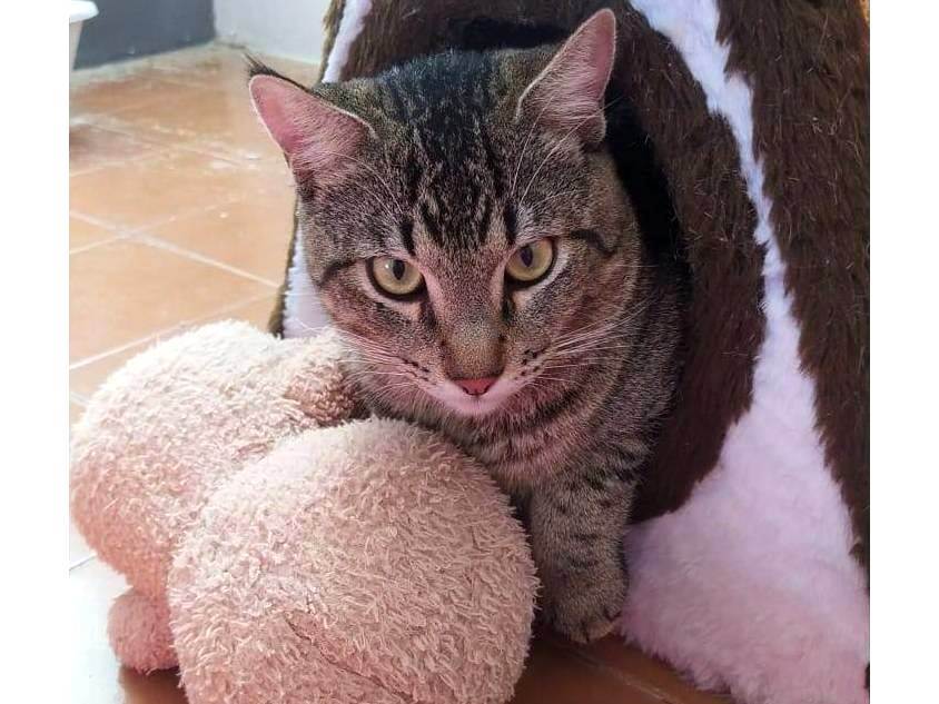 Pancinha é um gato bem grande, mesmo sendo adolescente, buscando uma família para não voltar pras ruas.