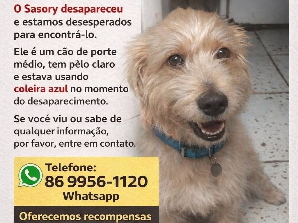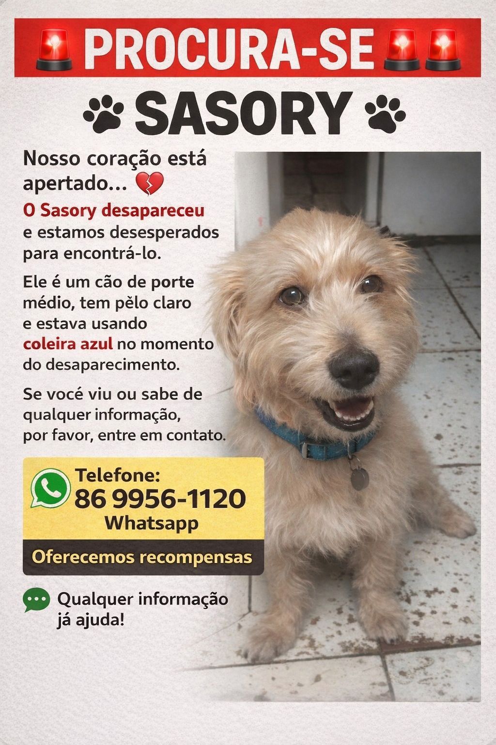Sasory, fugiu de casa faz 8 dias bairro São João.