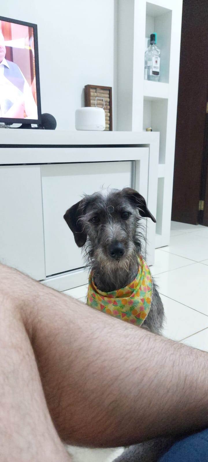 Cadela tipo fiapinho de manga, aproximadamente 11kg, muito inteligente/esperta. Ela possui um temperamento peculiar e no início pode ter medo, entretanto, após confiar é a melhor amiga que alguém pode ter.
