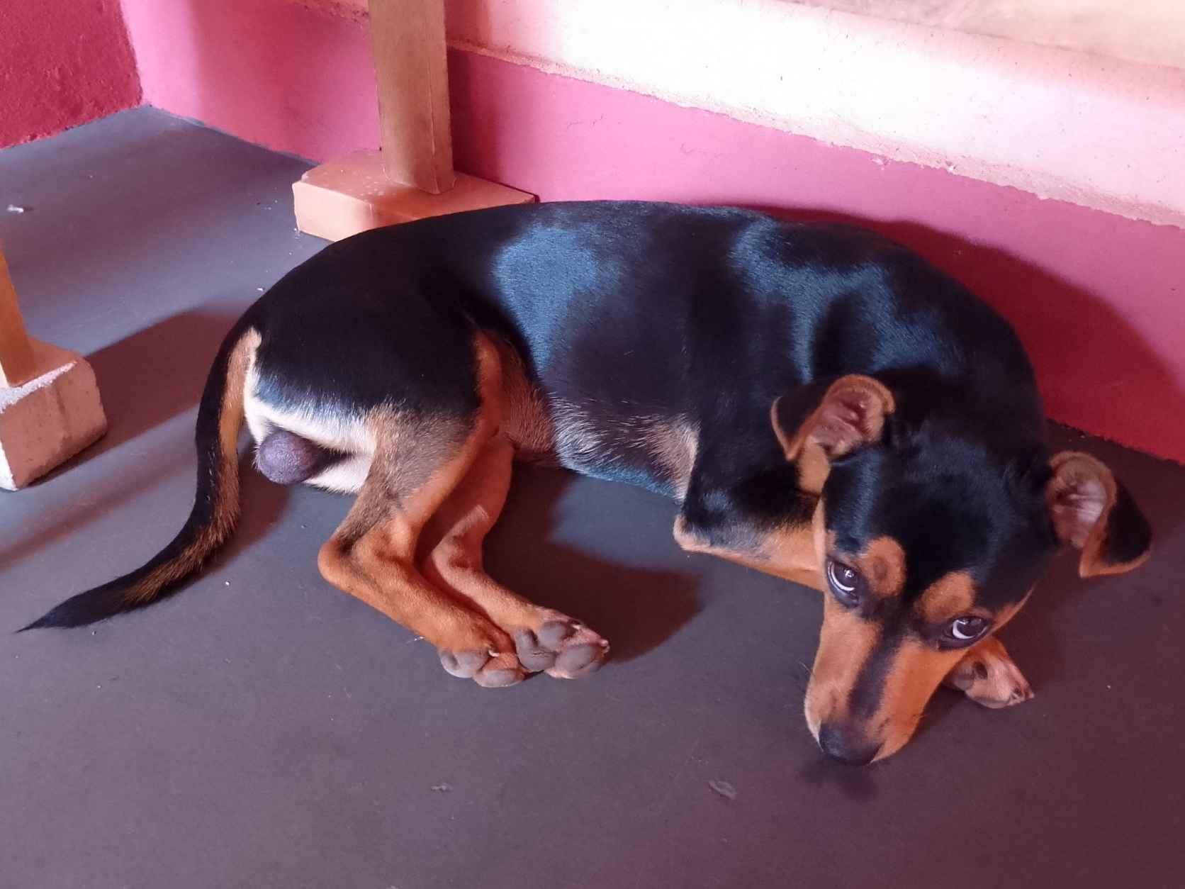 Ele apareceu na rua em que moro, quando tinha uns 4 ou 5 meses, hj, tem uns 8 a nove meses. Na rua não tem casas de frente, tem bastante árvores e sombra, ele vem sendo tratado por mim, e outros vizinhos até os dias de hoje. Meu vizinho da casa de cima também ajuda, ele fez a casinha em que ele está. Não posso ficar com ele, infelizmente, pois já tenho um animalzinho, e quem cuida é minha mãe que está idosa, e dois, já pesaria para o dia a dia dela. Eu, saio cedo e chego de noite, então seria mais com ela a decisão de adotar, como disse, infelizmente não podemos assumir esse compromisso com o bichinho. Ele é chamado de Tourinho, pelo seu porte mais fortinho. É ótimo para guarda, observamos quando o deixamos no nosso quintal. Nós temos o maior carinho por ele, não só eu e minha família, mas os vizinhos também. Está sendo bem tratado, mas na rua a gente sabe como é, apesar de ter casinha, água fresca e comida, aparecem outros cachorros maiores e tendem a disputar território com ele, isso pode o deixar mais agressivo, daqui para a frente. Ele é muito amoroso e simpático. Gostaria que encontrasse um lar e pessoas que o amassem. Obrigado!