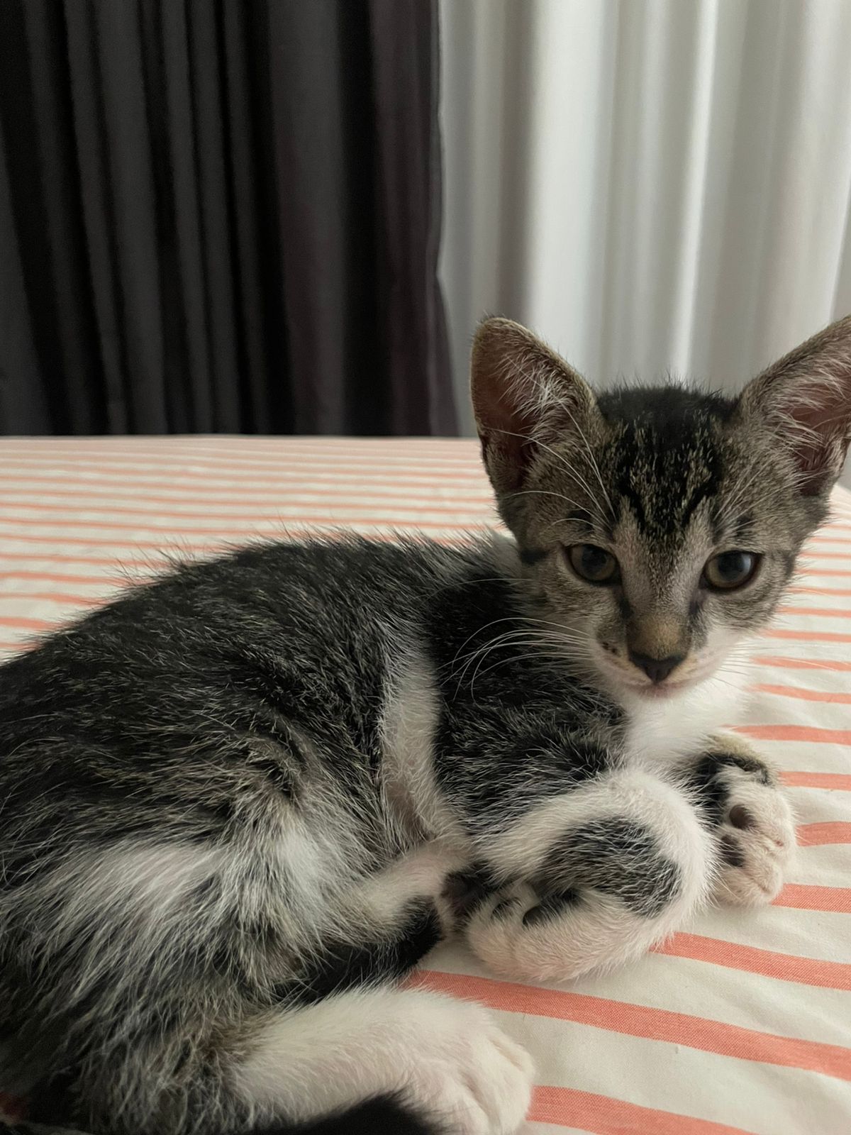 Dakota  Fêmea   Raça: SRD-ViraLata  Porte: Pequeno   Idade: 2 a 6 meses Pelagem: Rajada    Dakota é uma adorável gatinha da raça SRD-ViraLata, com pelagem rajada e entre 2 a 6 meses de idade. Com porte pequeno, ela possui um temperamento dócil e calmo, sendo uma companhia perfeita para quem busca um animal carinhoso e tranquilo. Dakota adora brincar e tem um espírito sociável, tornando-se rapidamente amiga de todos ao seu redor. Ela se adapta bem a ambientes de apartamento e é extremamente sociável com gatos e crianças, o que a torna ideal para famílias que possuem outros pets ou pequenos. Por ser um pouco independente, Dakota também aprecia momentos de tranquilidade. Se você busca uma companheira cheia de amor e personalidade, Dakota pode ser a escolha perfeita para você. Venha conhecer essa linda peludinha e descubra a alegria que ela pode trazer para a sua vida!