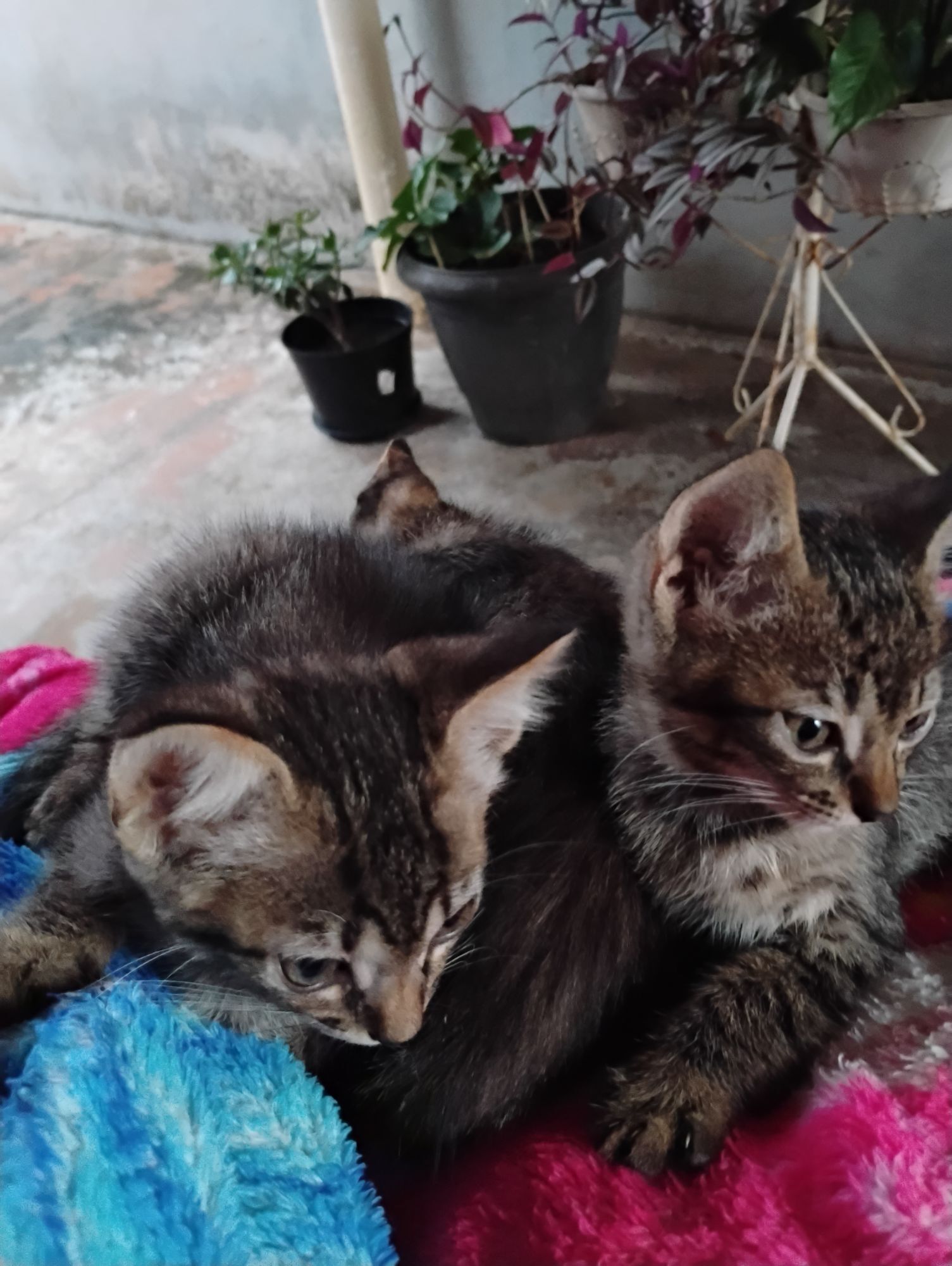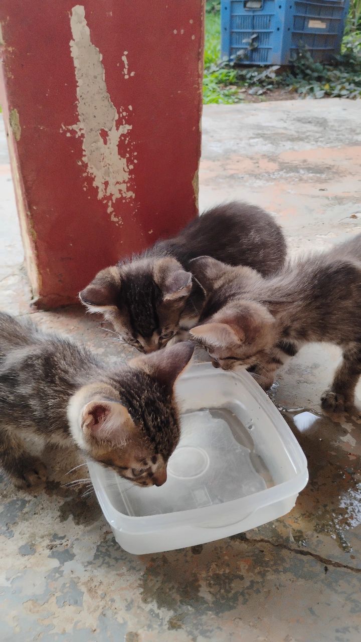 uma das fêmeas é um pouco mais agitada e mia mais, o gato macho é bem brincalhão e tem outra fêmea que parece ser mais esperta.