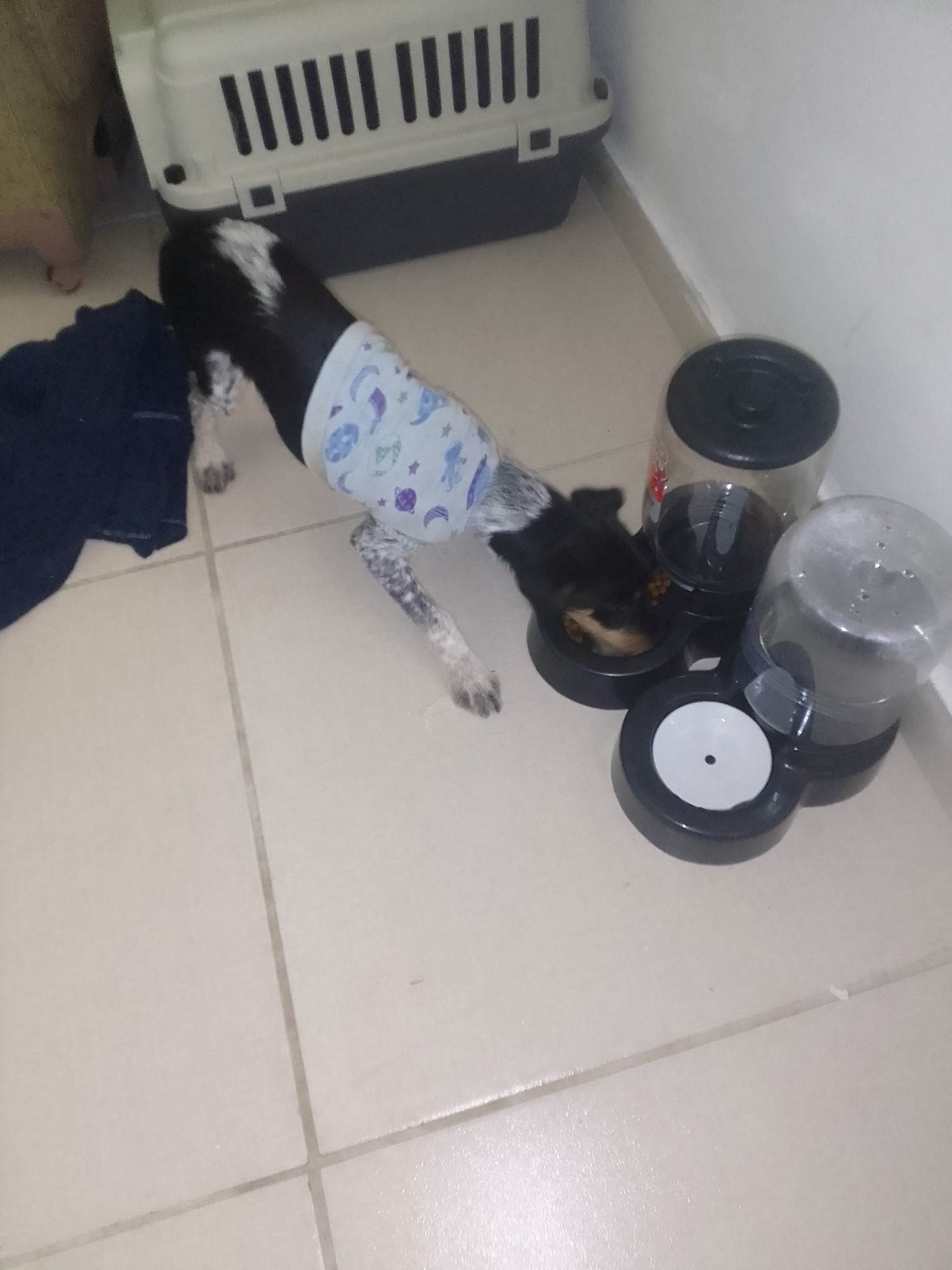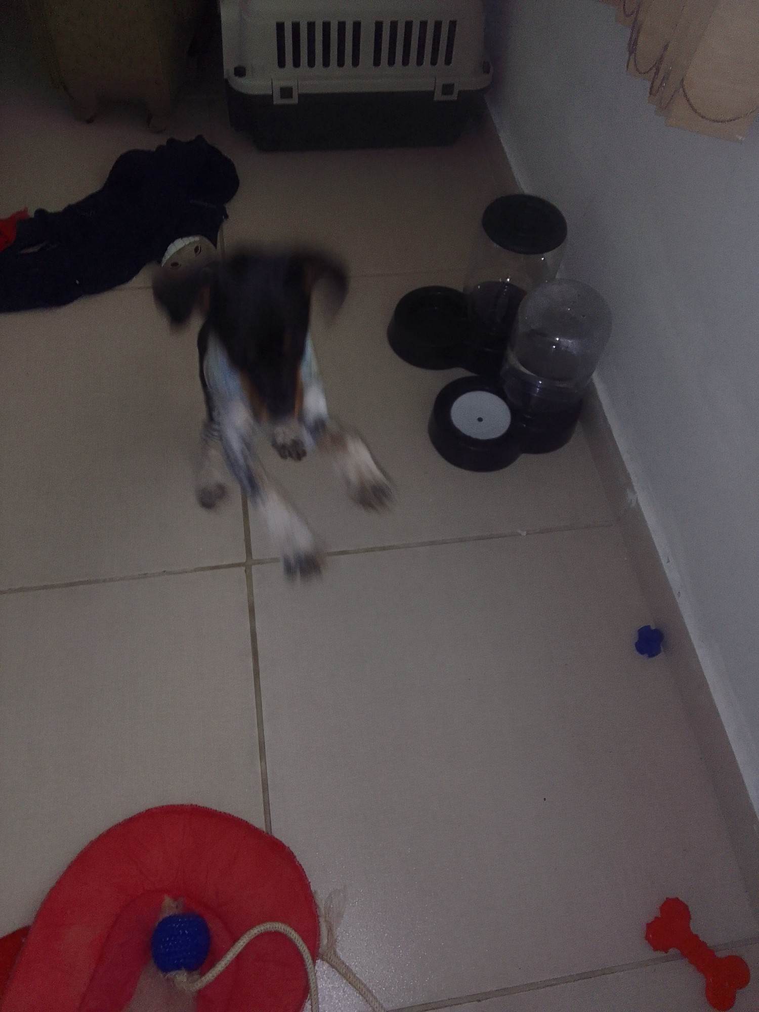 Ele já está vacinado e vermifugado. Terei que mudar para outro espaço menor. Ele precisa de espaço para brincar.