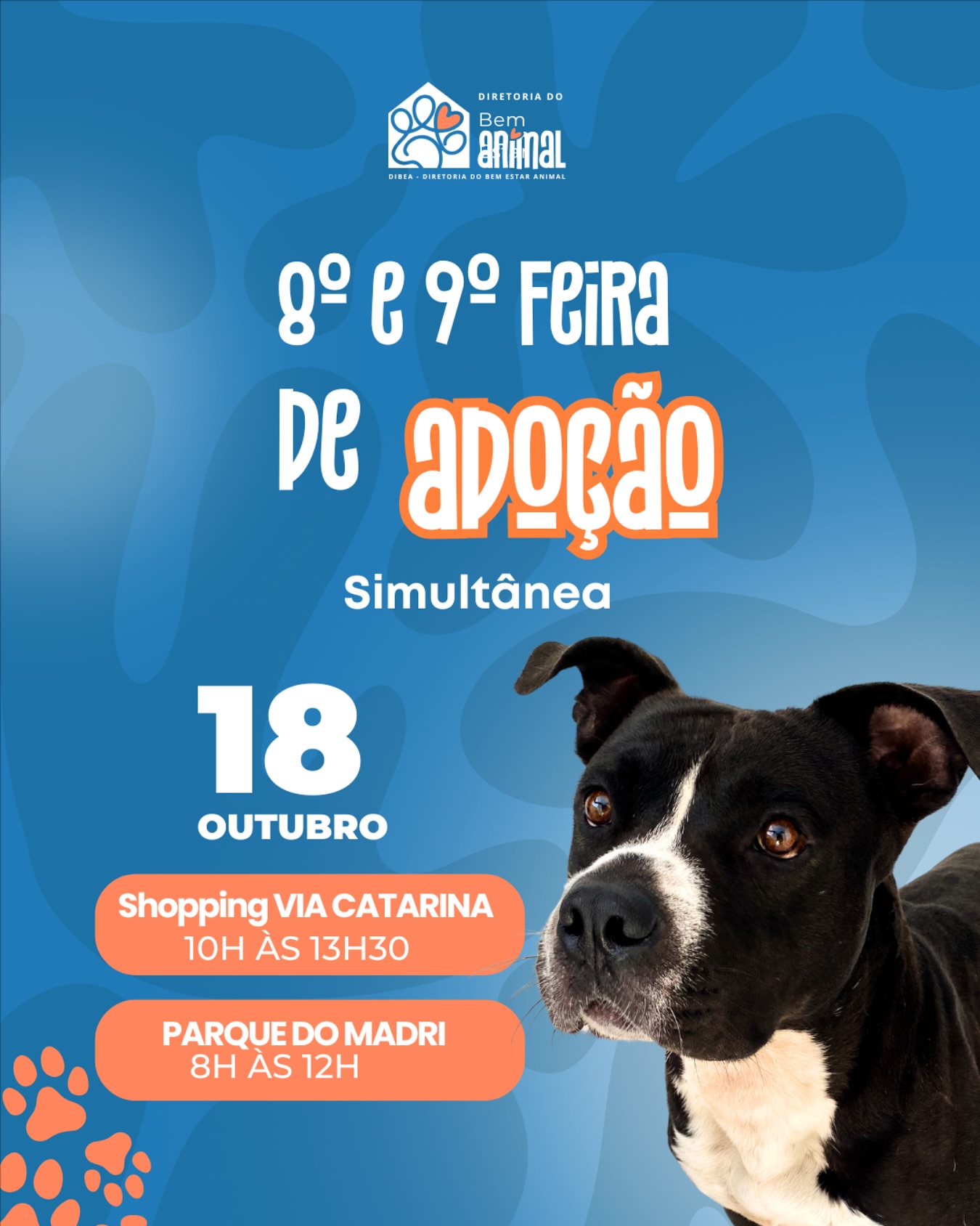 Prepare-se para encontrar o seu novo melhor amigo em nossa 8ª e 9ª Feira de Adoção de Cachorros Simultânea! Um evento especial dedicado a dar a cães adoráveis a chance de um lar repleto de carinho.