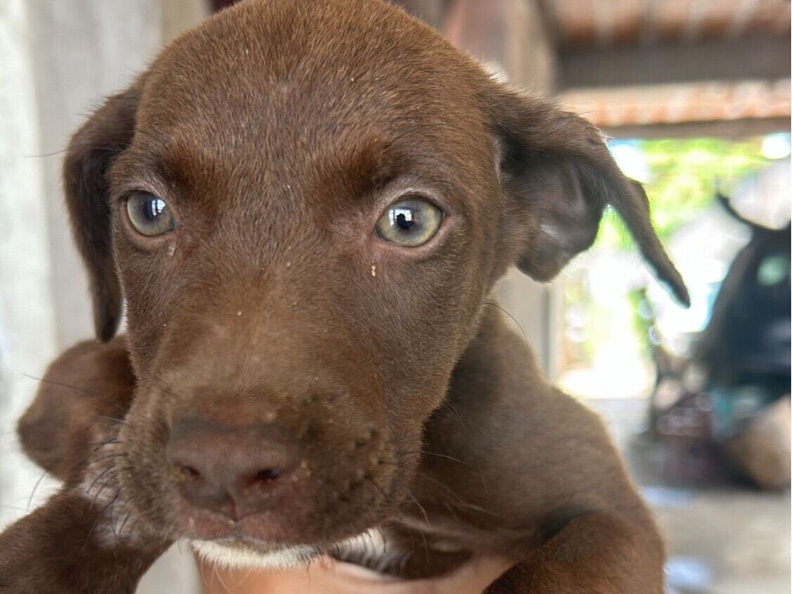 Essa é a Sem Nome, uma linda cadelinha da raça SRD-Vira Lata com pelagem marrom. Ela está em busca de um lar cheio de amor e cari
