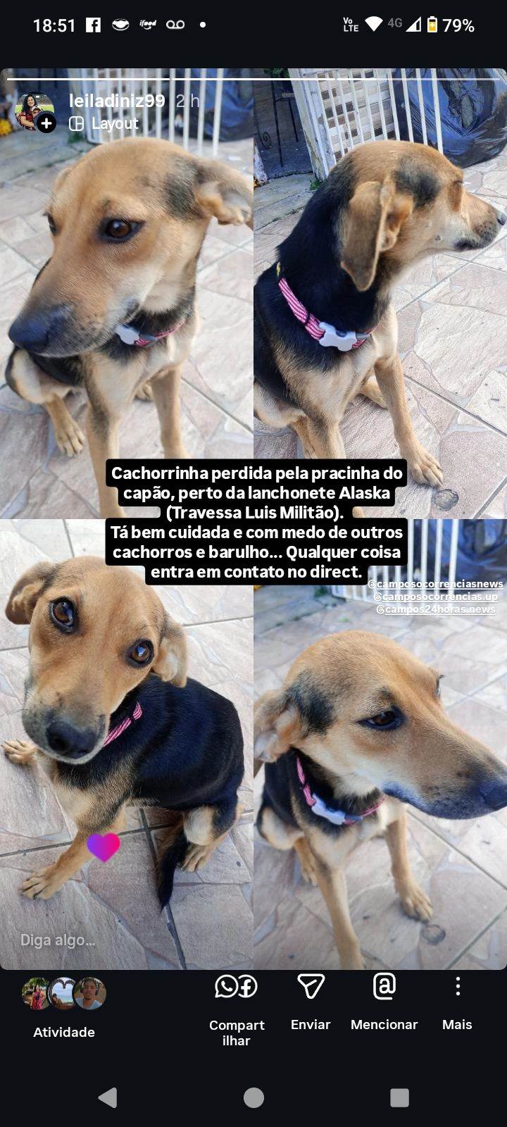 Achei perdida em frente a pracinha do capão,com medo dos outros cachorros de rua,está com coleira, parece bem tratada, pelos,dentes, orelha limpinha. Ela é muito carinhosa,quase não late, muito obediente.. não fico com ela pq não tenho espaço,não tenho quintal.??