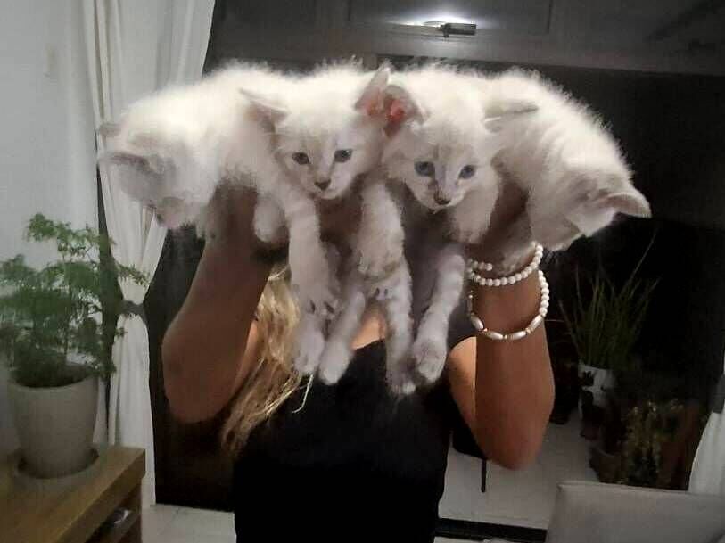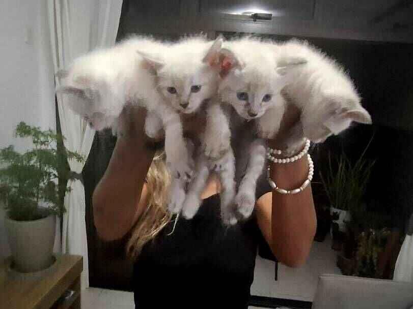 Oi, resgatei uma gata SRD-ViraLata que estava grávida e, com muito carinho, ela deu à luz a 6 filhotes no dia 29/12/2025. Eles estão desmamados, são super espertos e muito bonitos! Entre os filhotes, temos 2 trigrados e 4 branquinhos adoráveis.