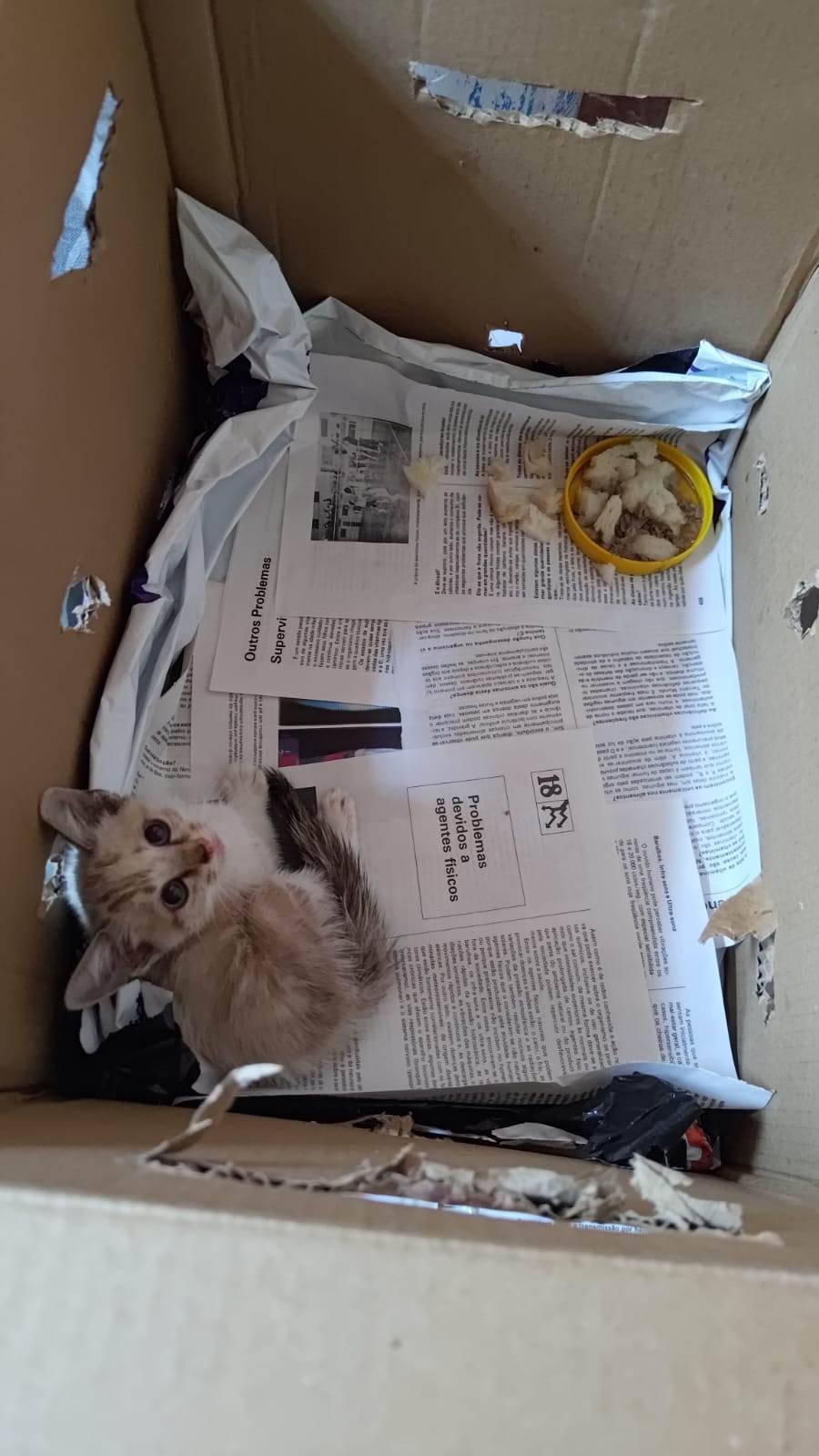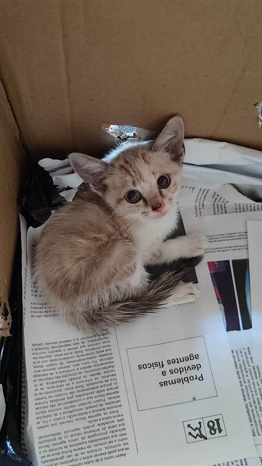 Ela foi encontrada no meio do mato de um terreno. A mãe dessa gatinha foi envenenada e os irmãos dela morreram.