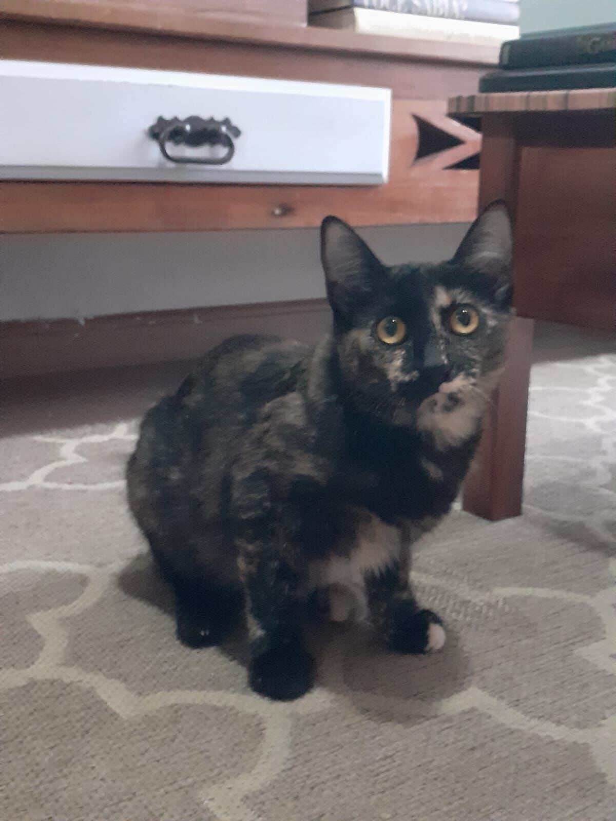 Gata muito mansa e comportada, foi resgatada após ter sido abandonada ainda filhote em uma oficina, onde o dono tomou conta. Já está castrada e vermifugada, come ração normalmente e usa a caixa de areia sem problemas. Está em Santa Rosa, Niterói interessados entrar em contato com Sissi