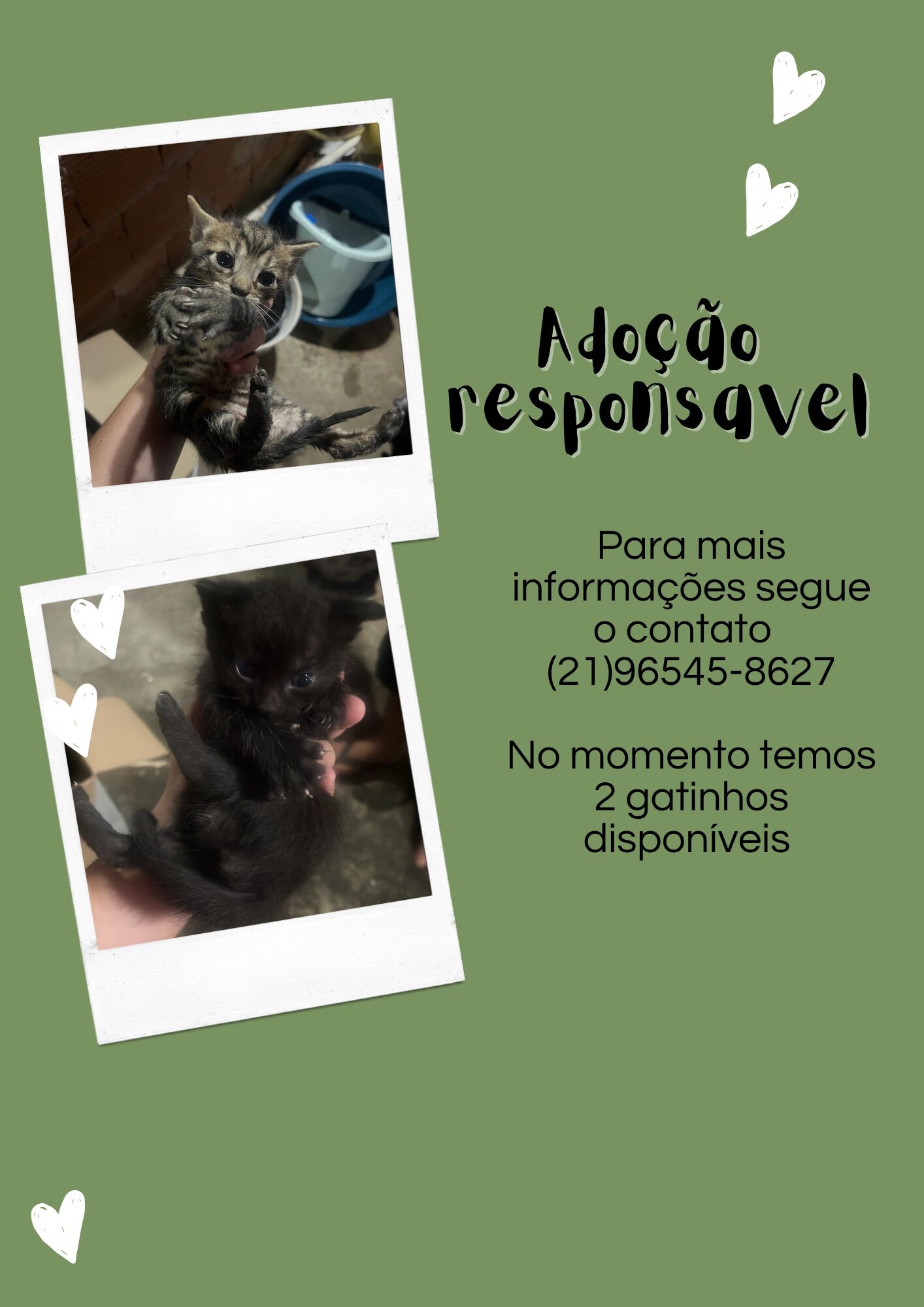 Estou pedindo a sua ajuda para encontrar um lar amoroso para 2 adoráveis gatinhos machinho que ainda não tem nome. Ele são lindos SRD de pelagem preta e pelagem rajada com cerca de 2 a 6 meses de idade, e possui um porte pequeno. Esses pequenos amigos são extremamente dócil, brincalhão e sociável, o que o torna perfeito para conviver com crianças, idosos e até outros gatinhos. Eles se adaptam bem tanto em casas com quintal quanto em apartamentos.