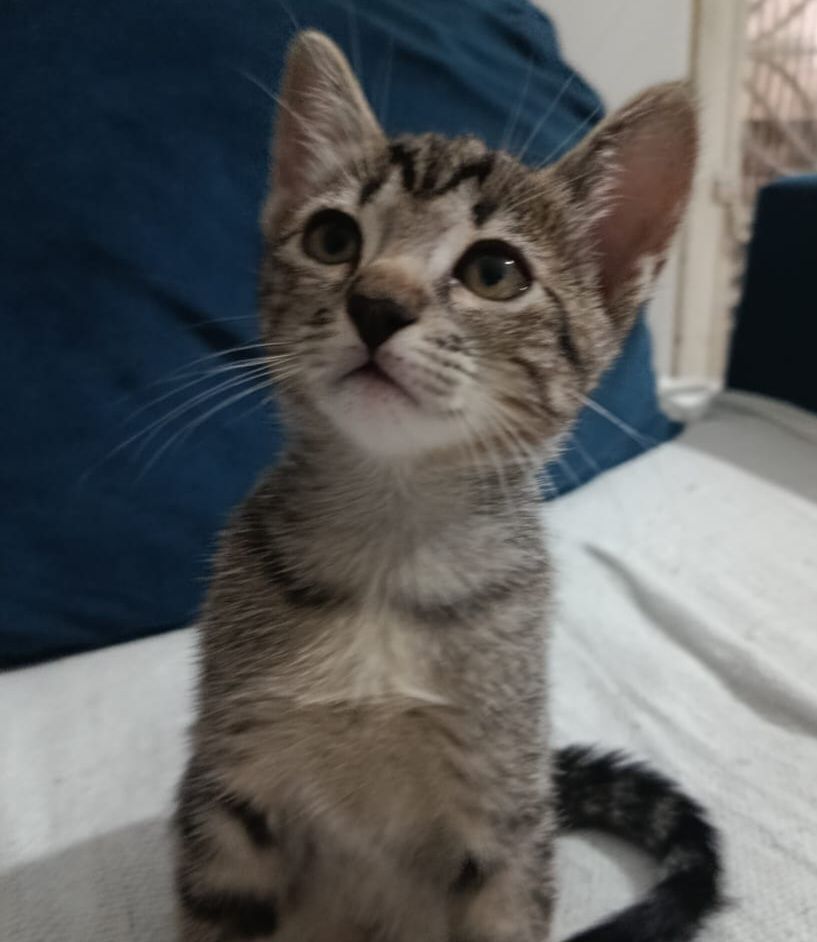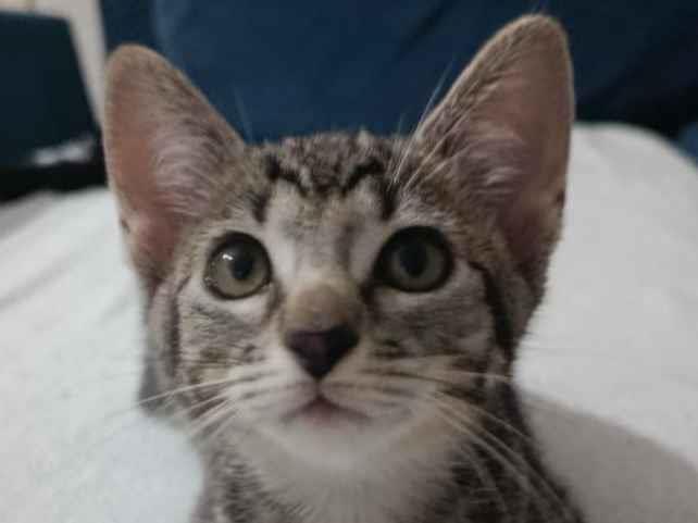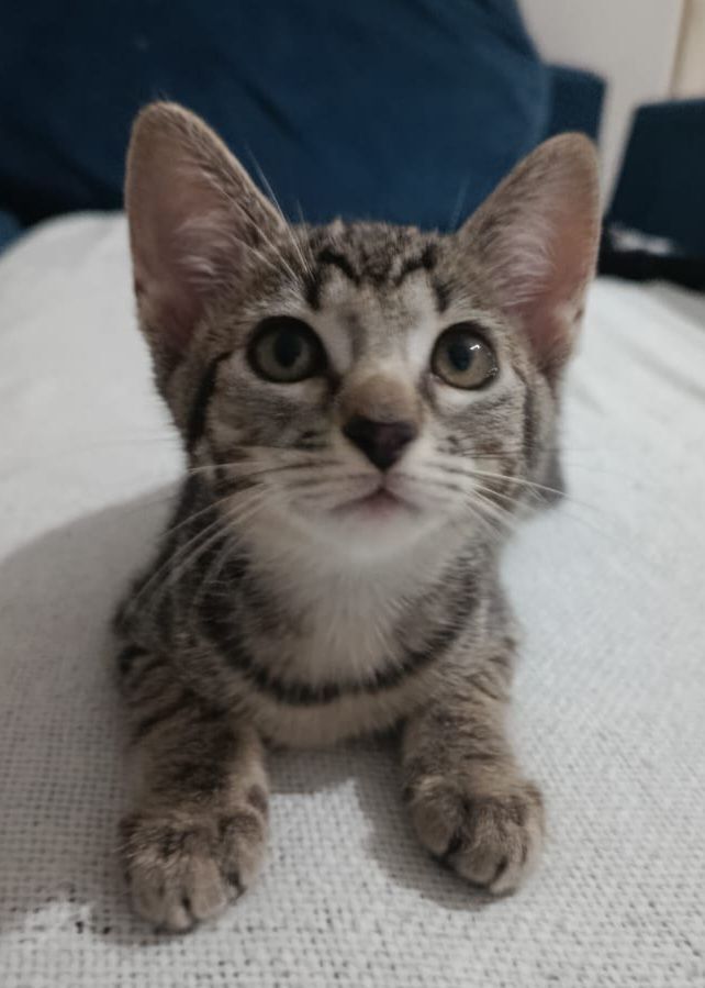 Conheça a Luna, uma adorável gata fêmea. Com apenas 2 meses, ela possui uma pelagem rajada que a torna ainda mais especial. Luna é de porte pequeno e tem um temperamentinho encantador: é dócil, brincalhona, sociável e também valoriza sua independência.