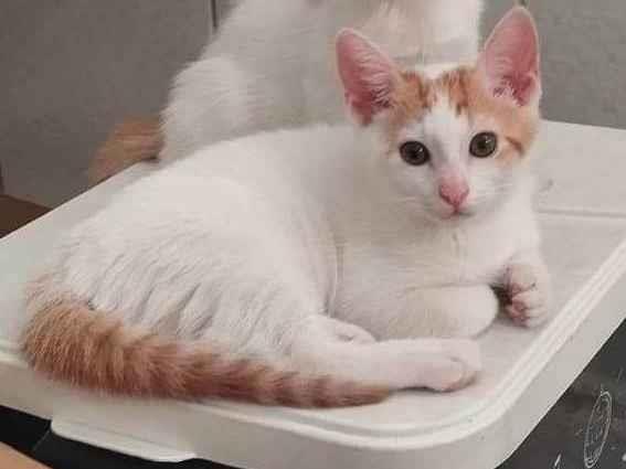 Oi, sou chamado de Mister M pois sou predominantemente de pelo branco, mas tenho algumas manchas de pelo amarelo pelo corpo sendo uma em formato de M na cabeça. Amo beijos no meu pescoço, sou extremamente carinhoso e brincalhão. Me dá uma chance de ter um lar?