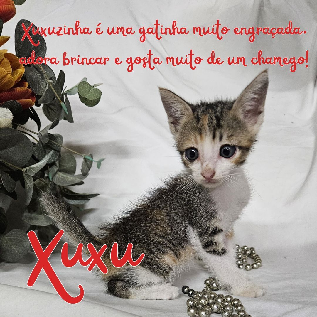 Xuxu foi abandonada junto dos irmãos no Sábado (24/01/2026). É uma gata muito engraçada, carinhosa e muito brincalhona. Embora o passado triste, é uma gatinha cheia de alegria, que ama brincar e de um bom carinho! Dê um final feliz a essa gatinha! Escolha a adoção!