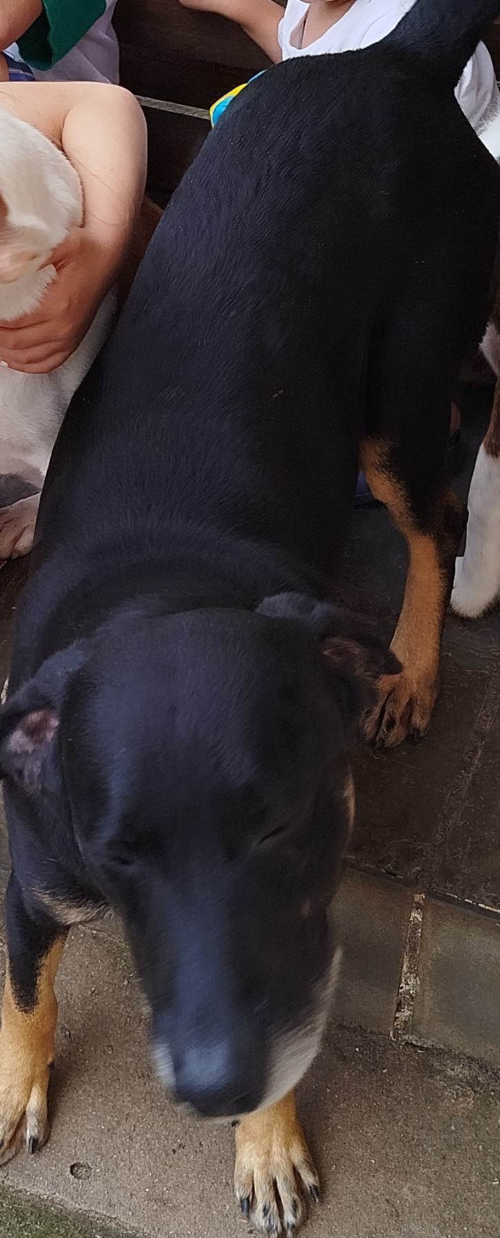 Ele bonito, preto, labrador, gosta de carinho, vacinado.