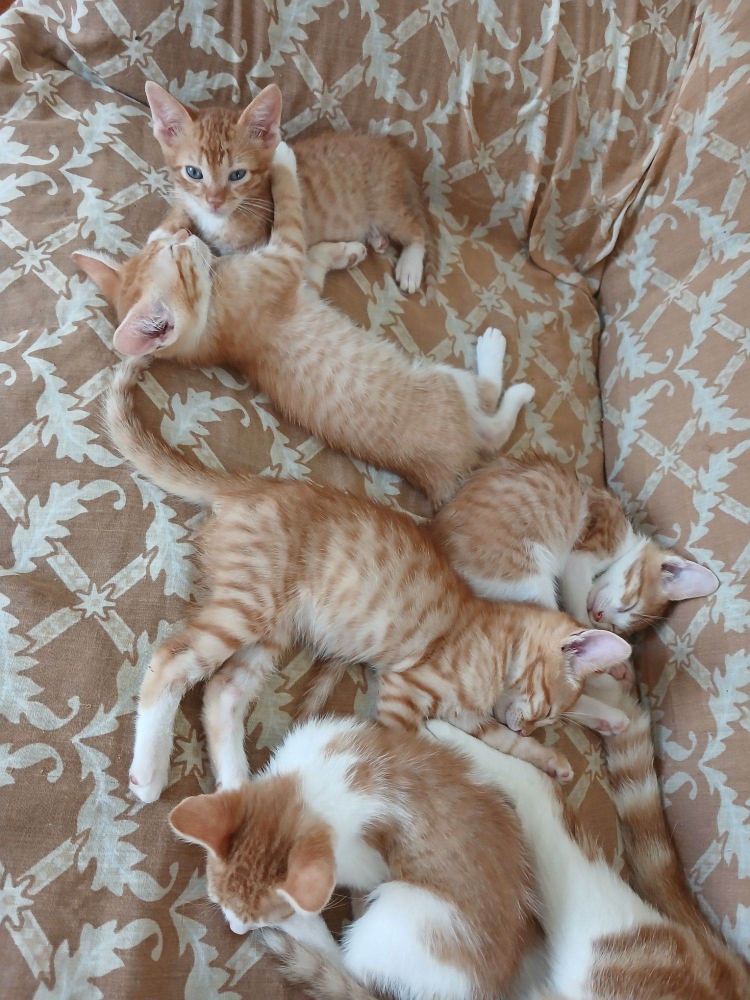 estou doando 5 gatos amarelo e branco, sendo 2 fêmeas e 3 machos, são muito brincalhões e carinhosos estão com 2 meses e 1 semana, ja podem ser adotados!!