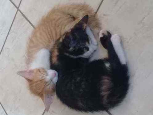 São muito brincalhões, tem 2 meses e são muito carinhosos. Um é frajola e se chama Romeu,a outra é mista e se chama Olivia ela tem uma pintinha na boca e o outro é amarelo e branco e se chama Harry