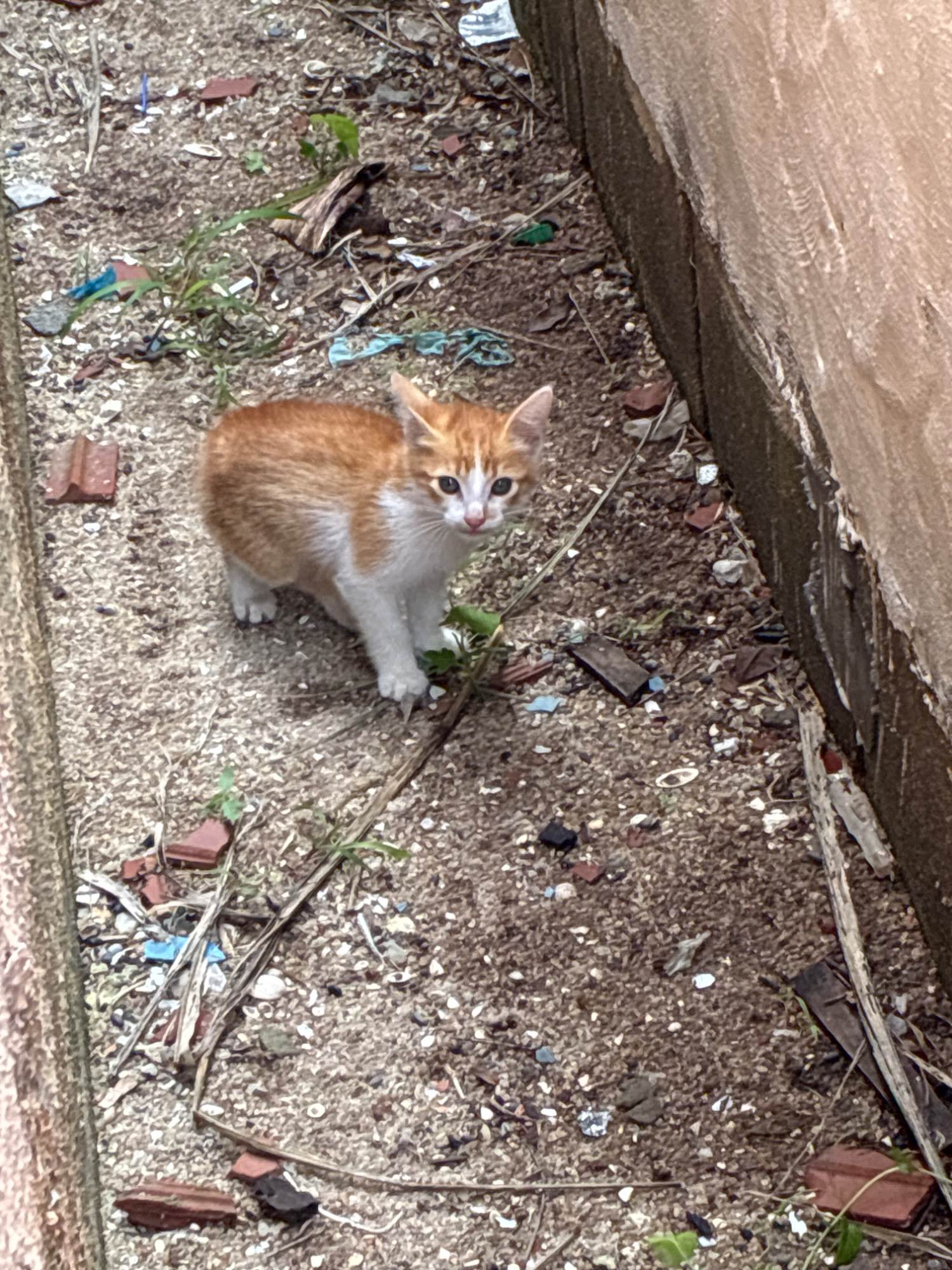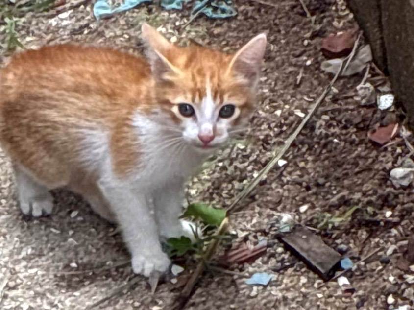São dois gatinhos que foram jogados dentro do quintal, meio tímidos e tem pelagem amarela e branca