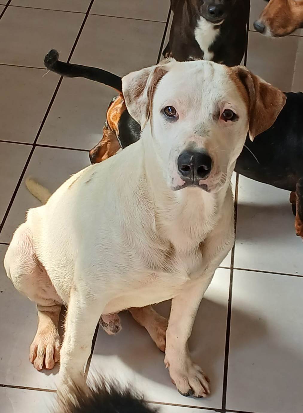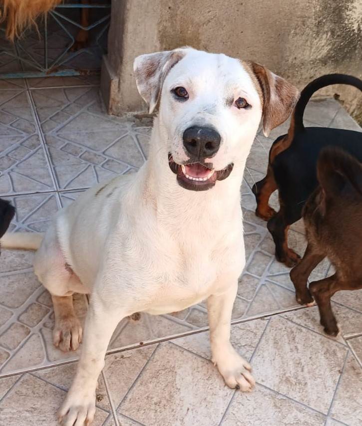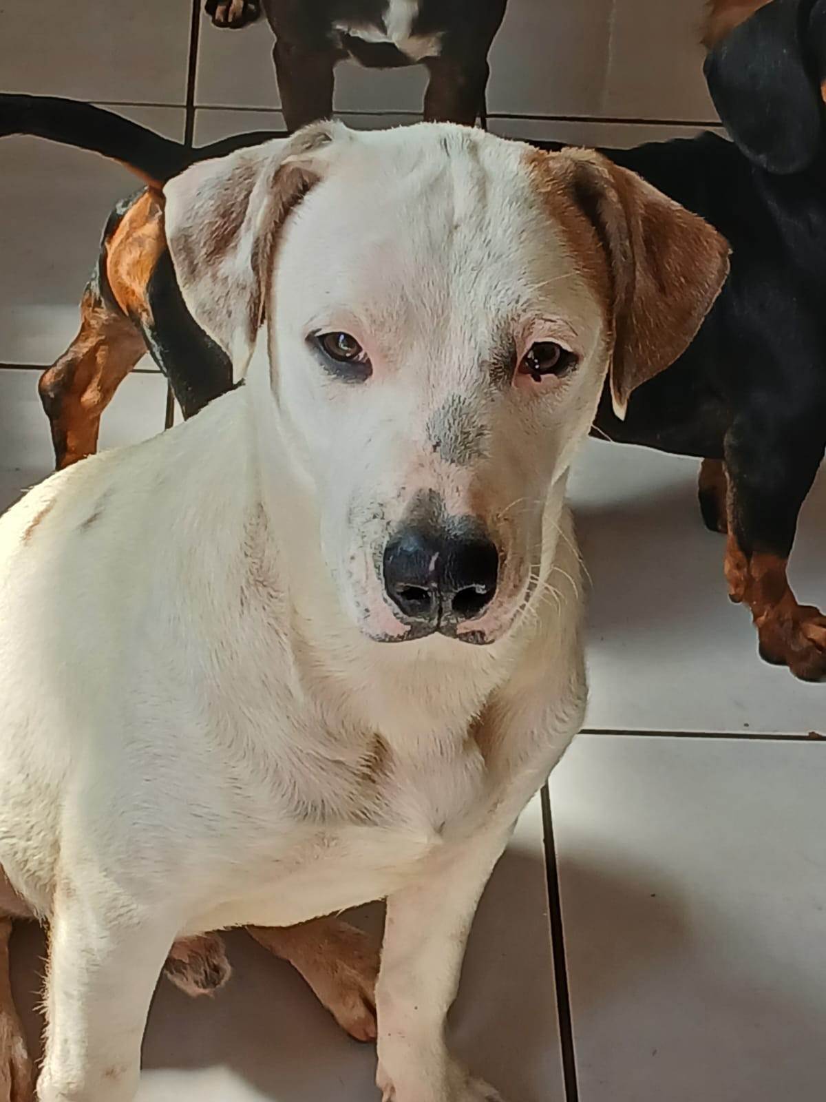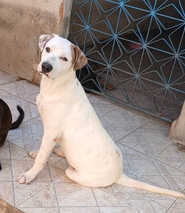 Esse lindo filhote está para adoção responsável. Branco está com 7 meses, está vermifugado, com a primeira dose da vacina, e ficará porte médio . Ele é muito carinhoso e brincalhão. Quem tiver interesse em levar muito amor pra sua casa, por favor, entre em contato pelo ZAP 21 96419-5603. Ele está em Guadalupe.