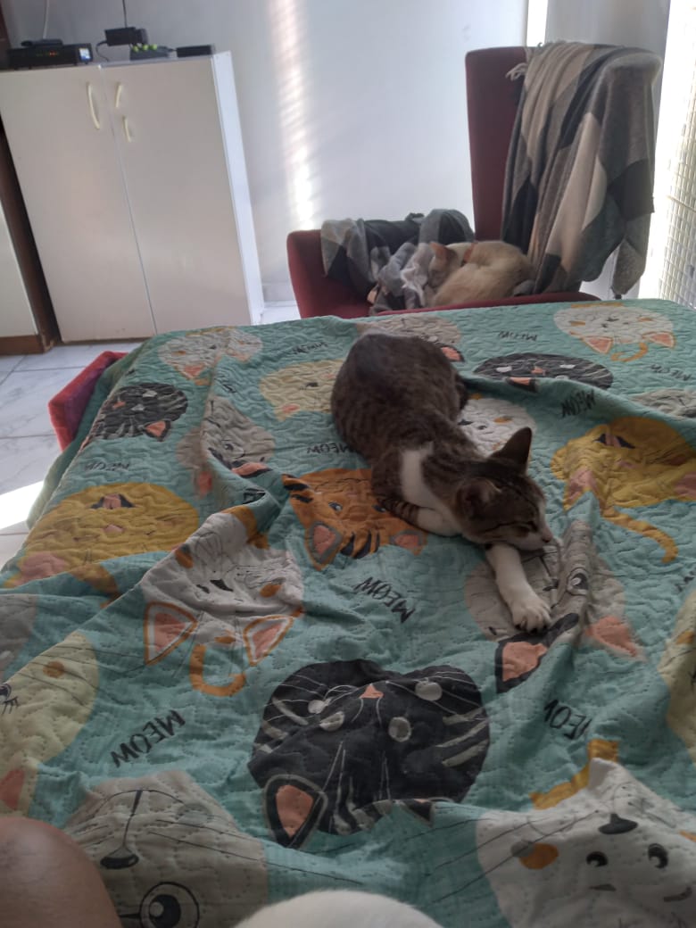 Catarina tirei na rua porque iria ser atropelada cuidei vacinei e vermifuguei o motivo da doação já tenho 8 gatos não tenho espaço