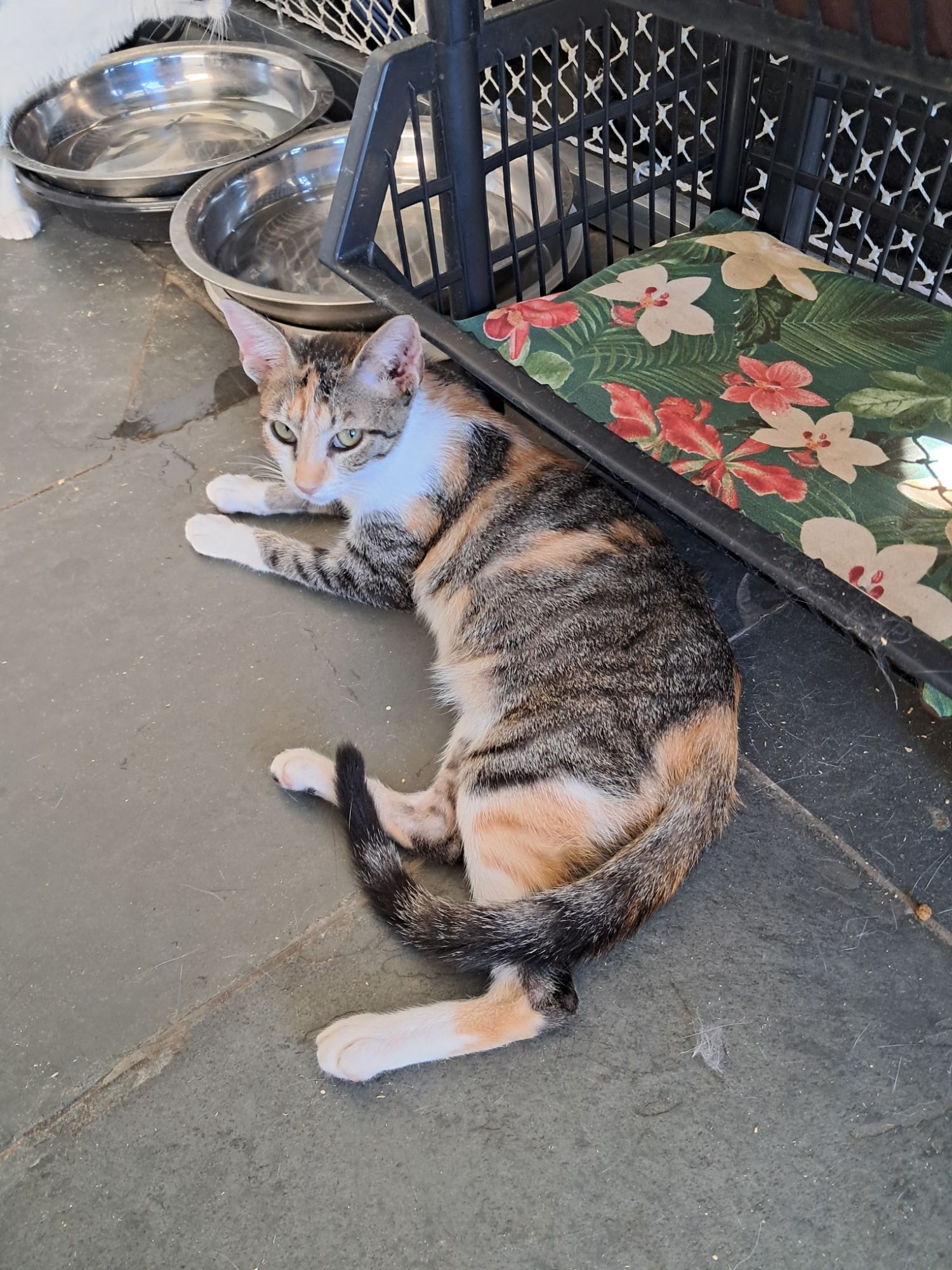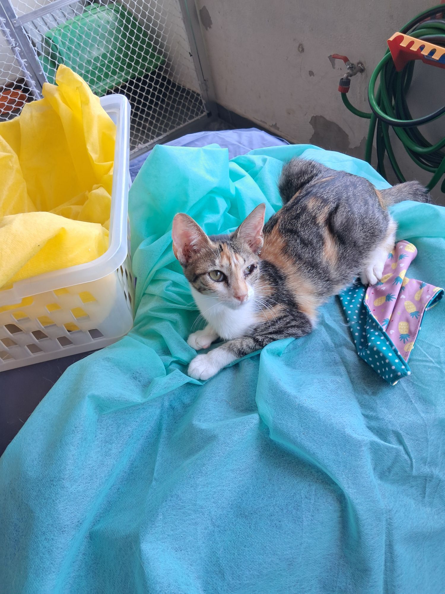 Jolie é uma linda gatinha tricolor de aproximadamente 3,5 meses. Vermifugada, testada para Fiv/Felv (negativa) e vacinada. É uma gata dócil e brincalhona, mas pode ficar um pouco assustada na mudança para um novo ambiente.
