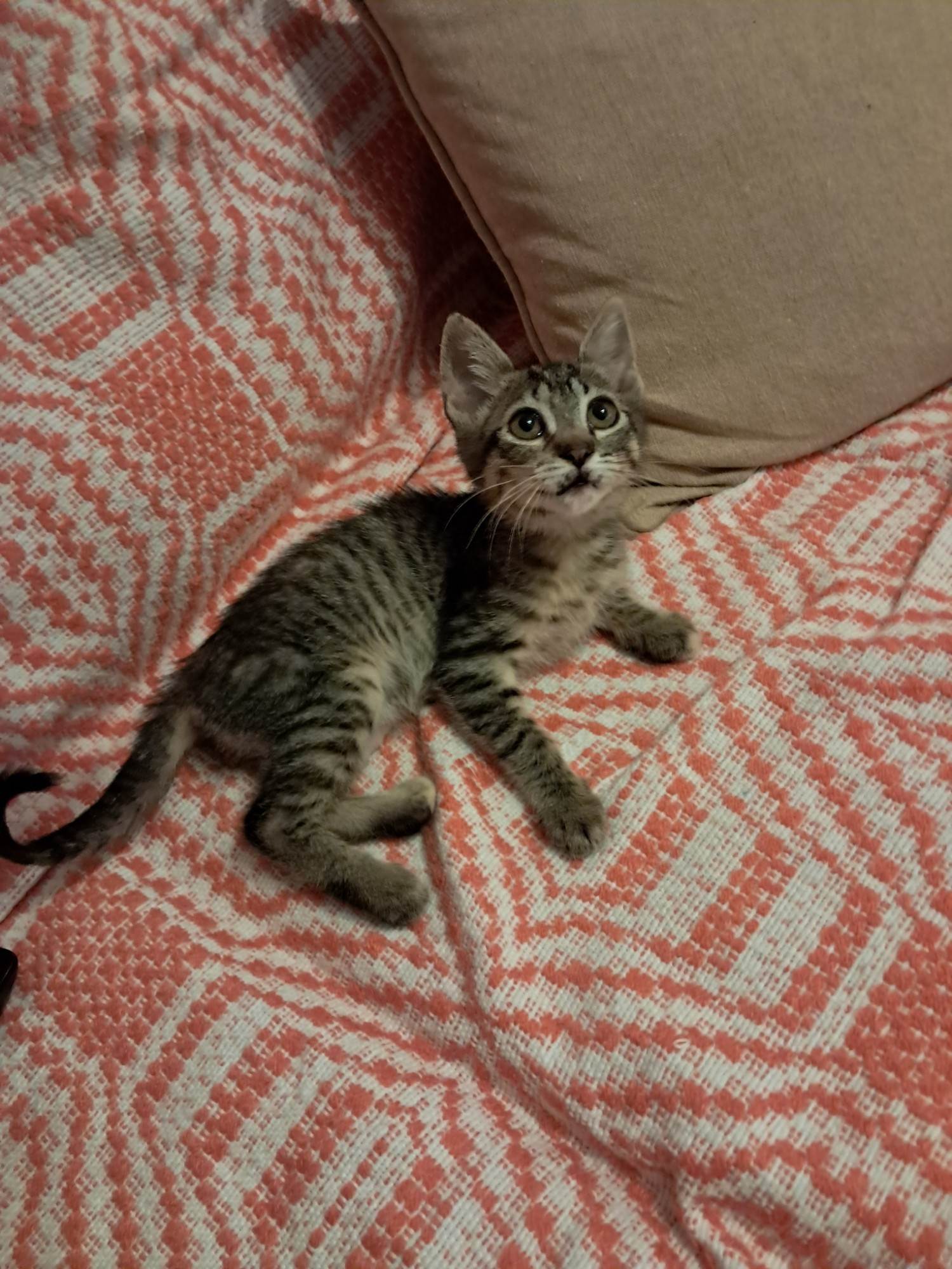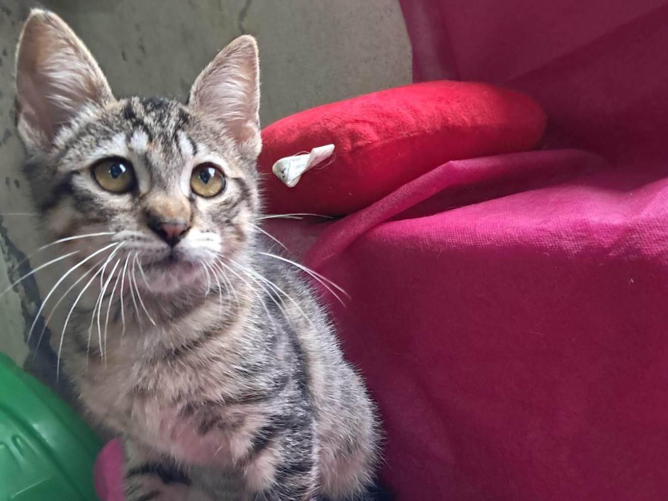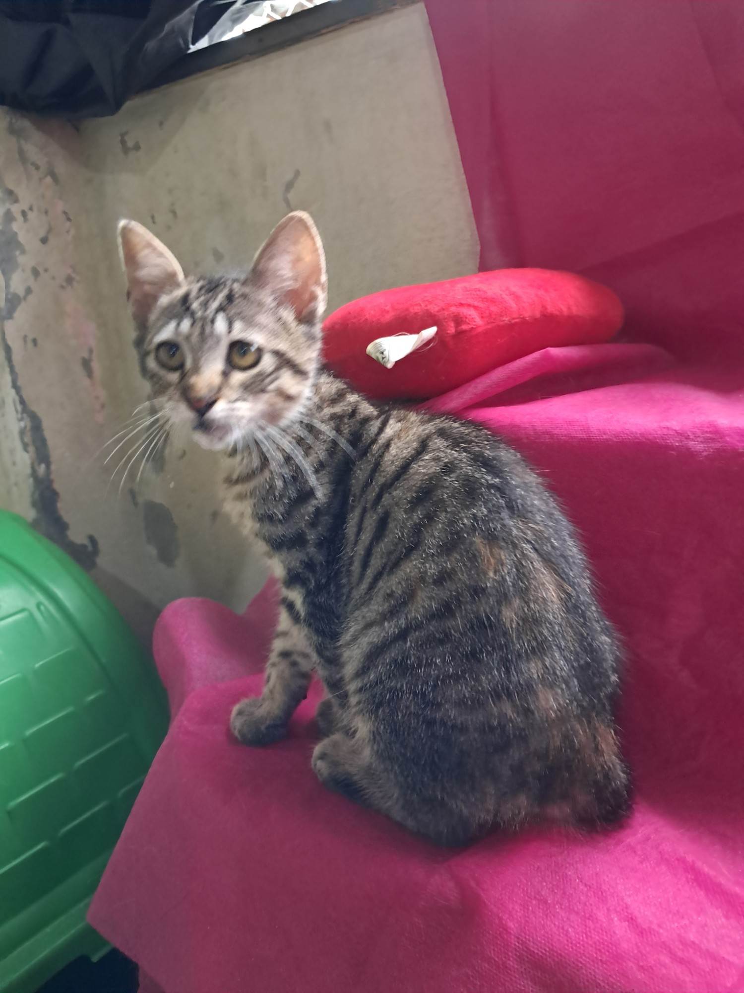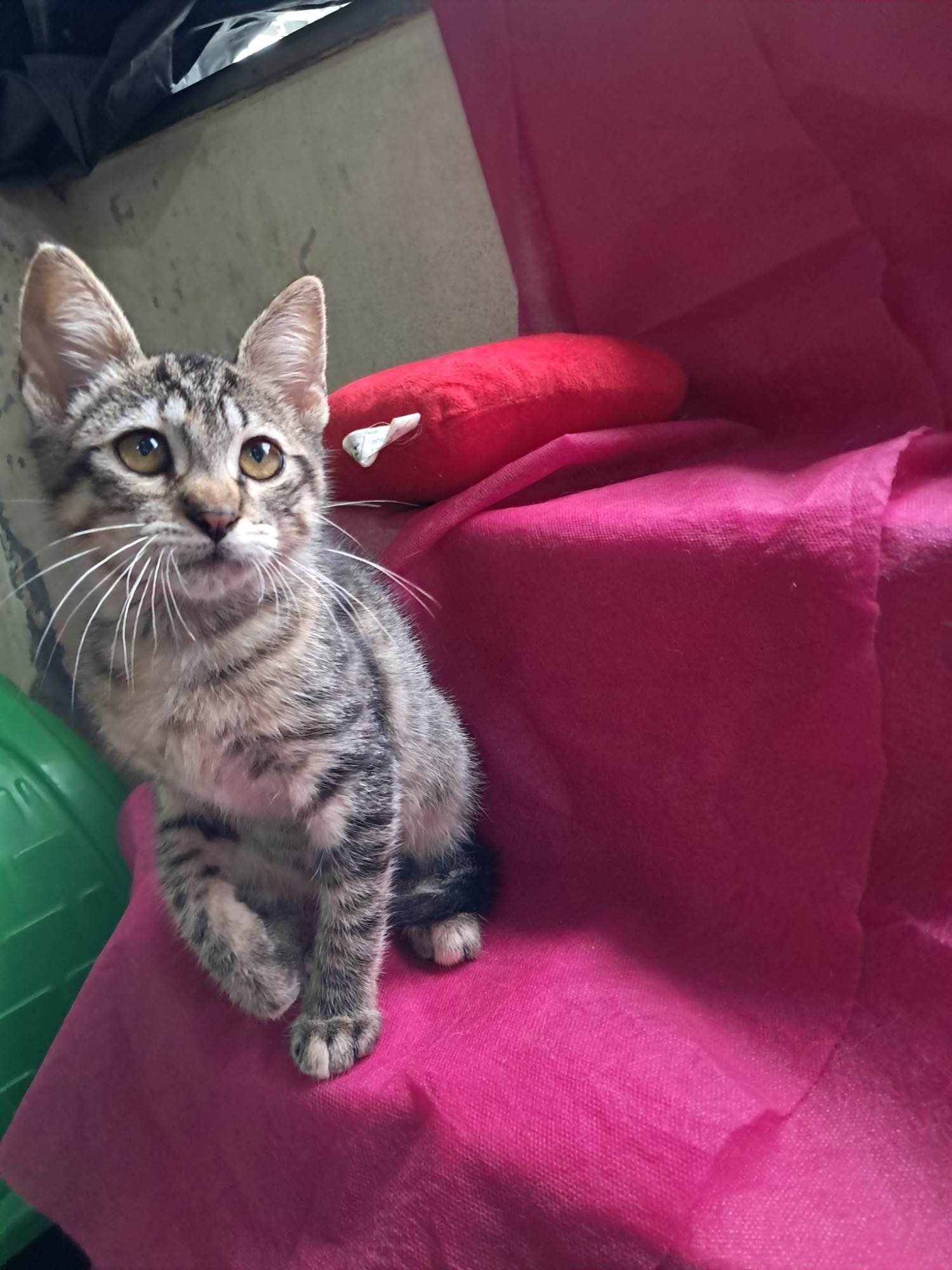 Magali é uma linda e fofa tigradinha, de aproximadamente 3,5 meses, vacinada, muito dócil e carinhosa. Gosta de brincar e se dá muito bem com outros gatinhos.
