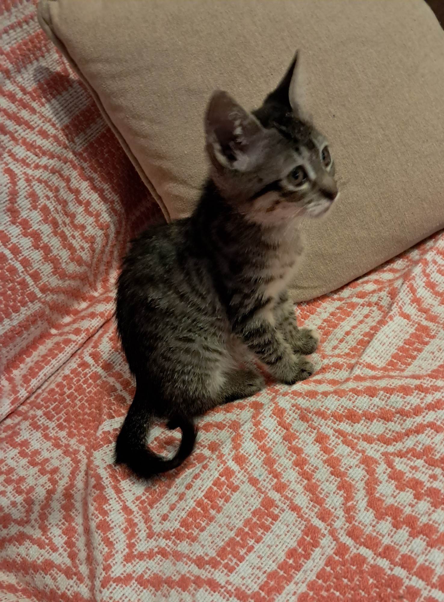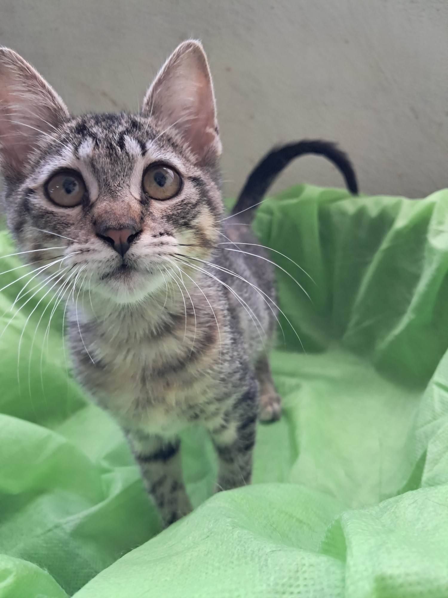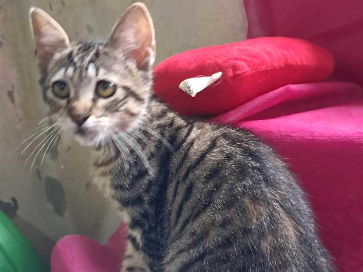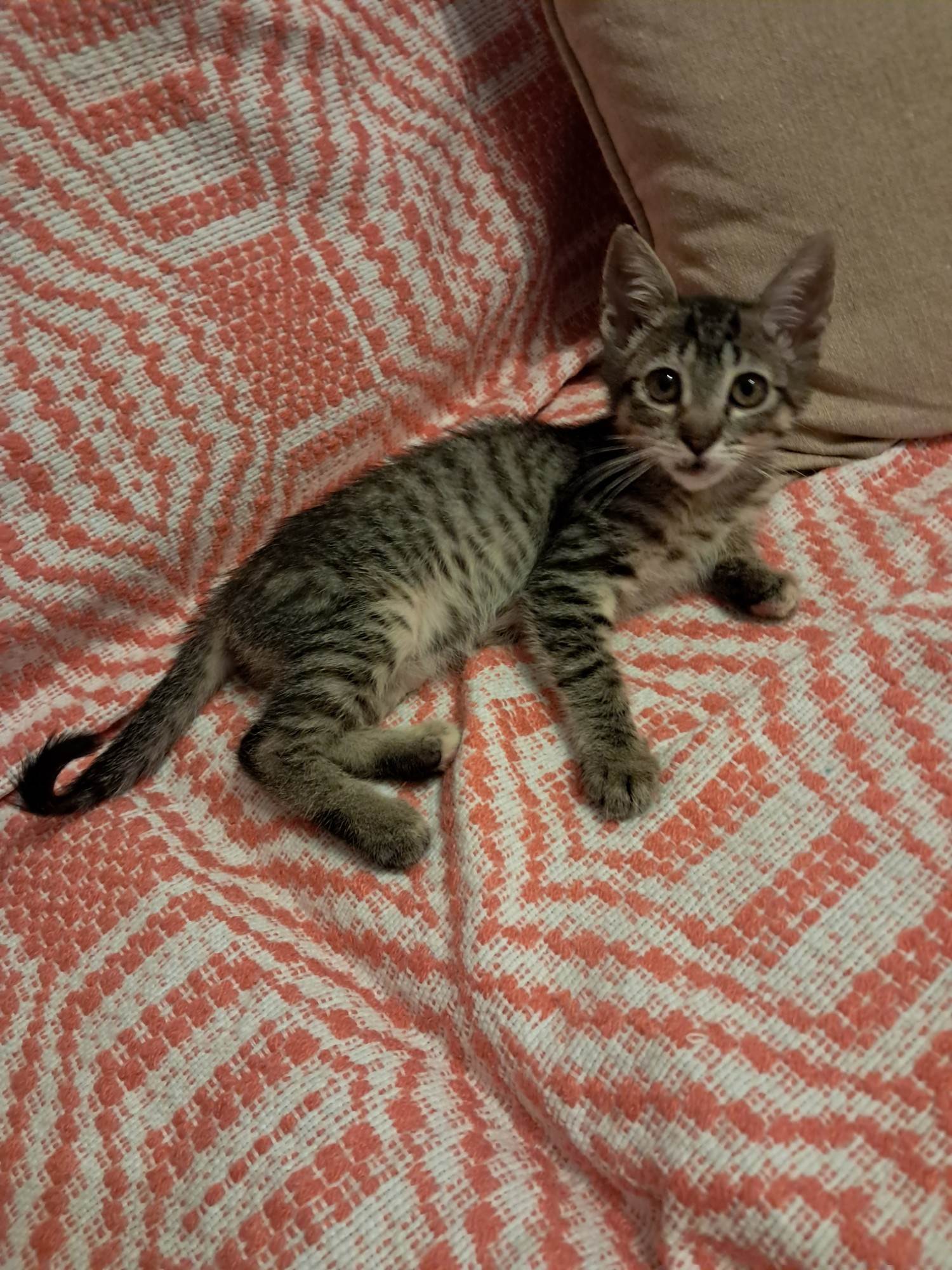 Magali é uma linda e fofa tigradinha, de aproximadamente 3,5 meses, vacinada, muito dócil e carinhosa. Gosta de brincar e se dá muito bem com outros gatinhos.