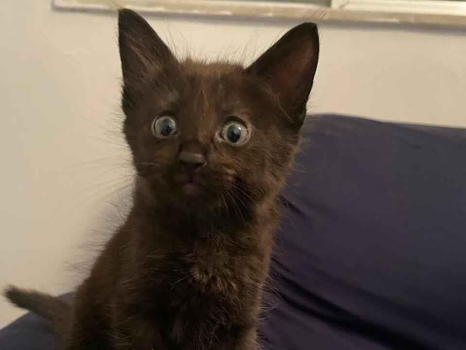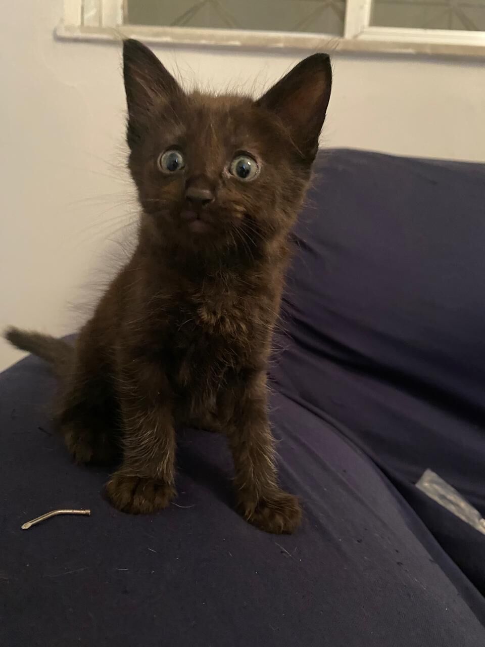 Ele tem um pouco mais de um mês. Já começou a comer ração.