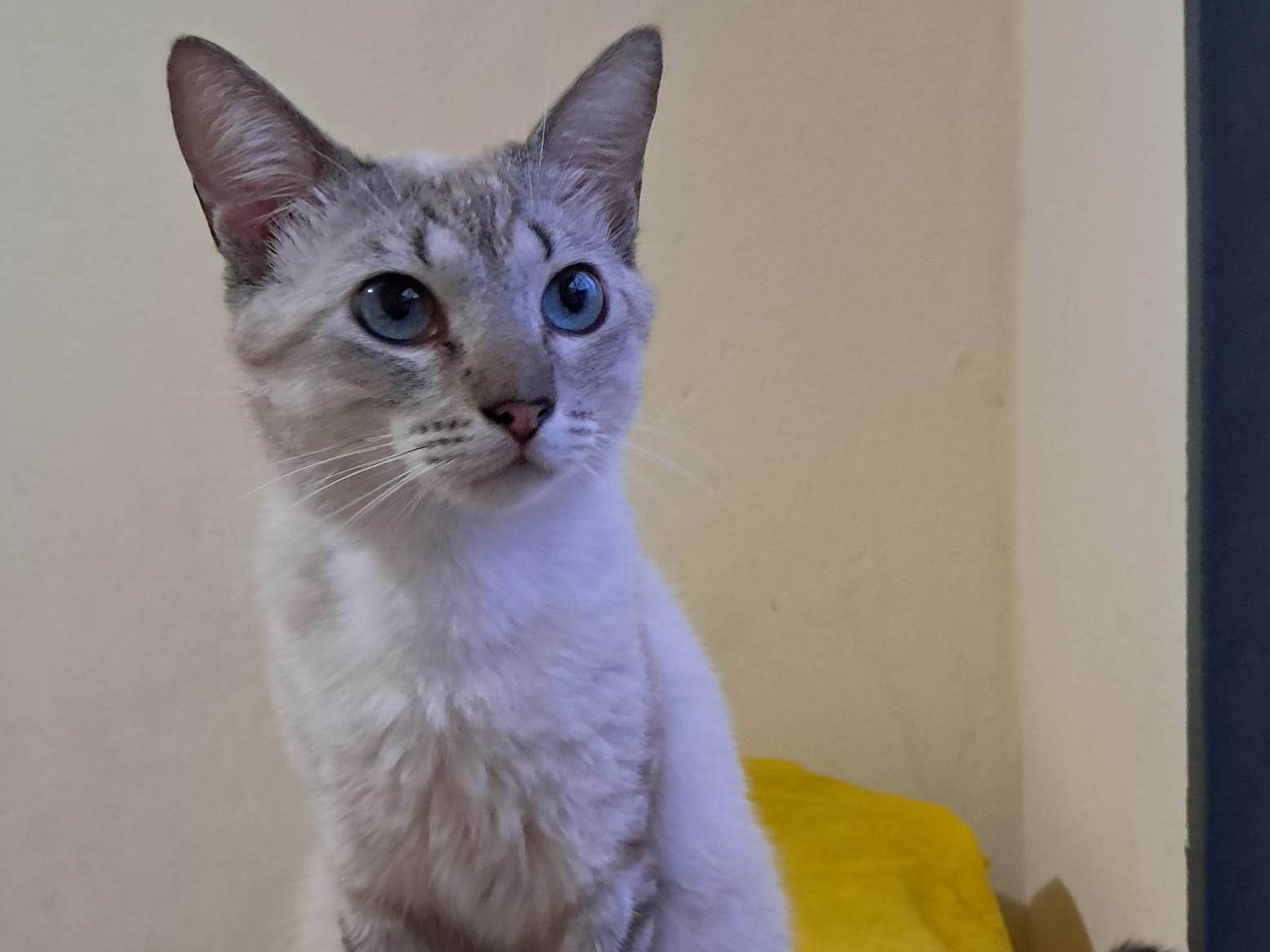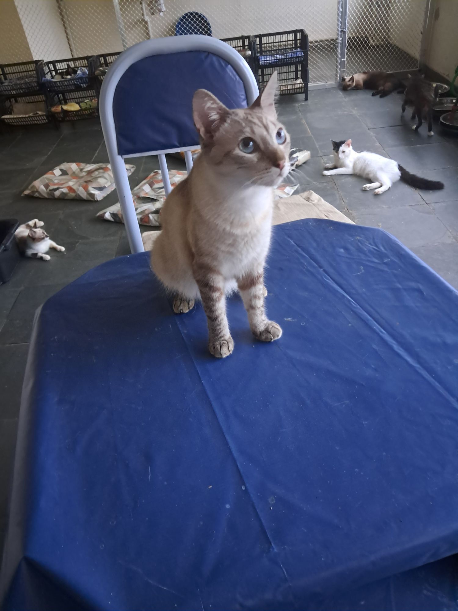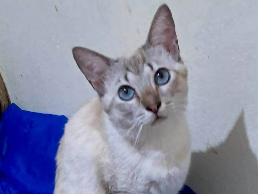 Toni é um lindíssimo gato de olhos azuis. Castrado, testado para Fiv/Felv (negativo) e vacinado, tem em torno de 1 ano. Muito dócil e carinhoso, convive bem com outros gatos. Adoção somente para residências seguras, sem risco de fuga, com redes de proteção nas janelas ou varandas.