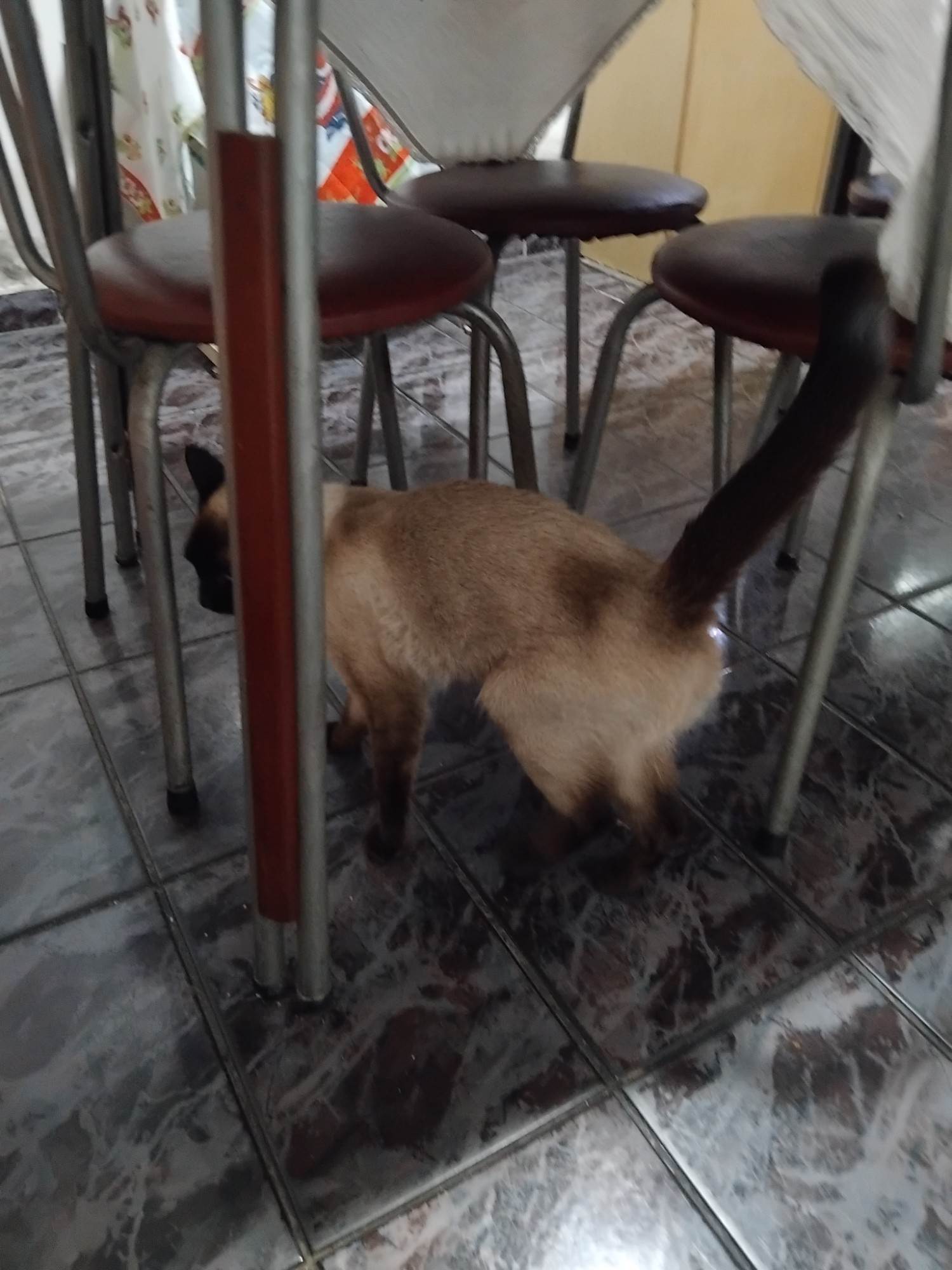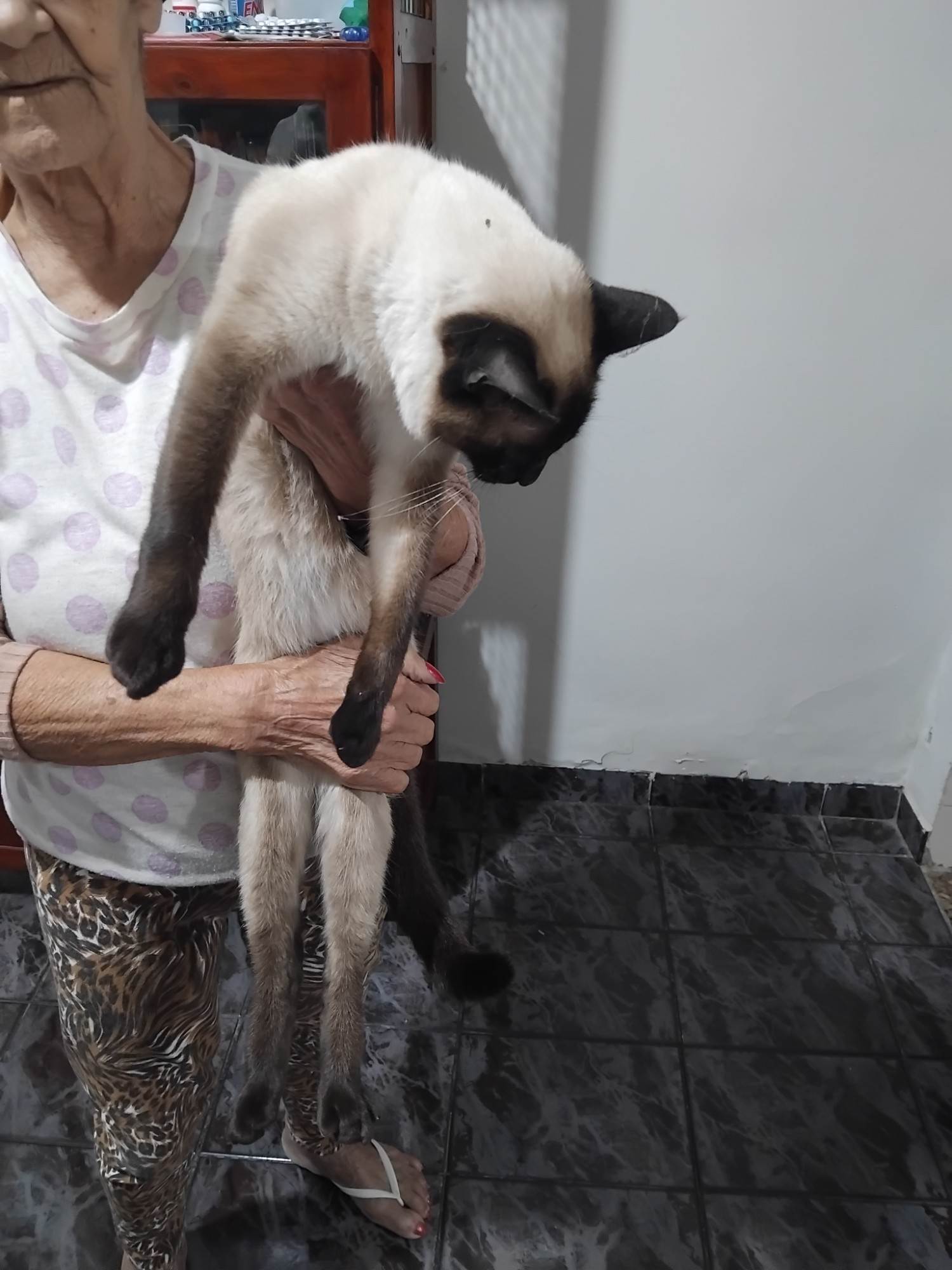 A gatinha apareceu aqui em minha casa com desidratação e fraqueza... ficou internada por 24 horas sob cuidados veterinários... já está aqui há 6 meses!!! Foi castrada!!! Estima-se que tenha por volta de 3,5 anos de idade!!